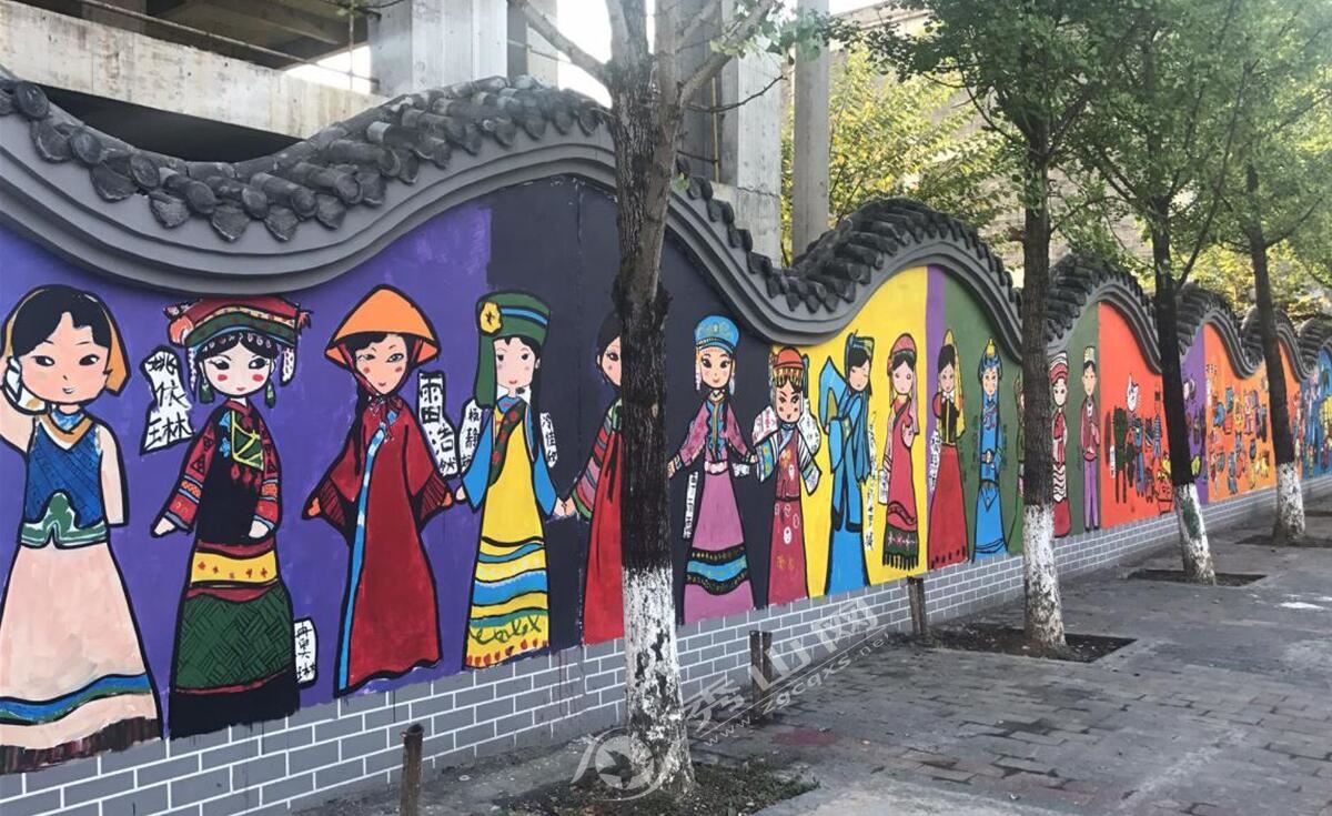 據悉,將千米白墻全部涂鴉成畫,實現了宣傳形式由文字到圖畫的擴展,有效成為我縣禮、儀、孝、廉等傳統美德傳承的平臺,民風民俗示范的陣地,民族特色元素展示的窗口,進一步助推我縣民族團結進步事業再上新臺階。