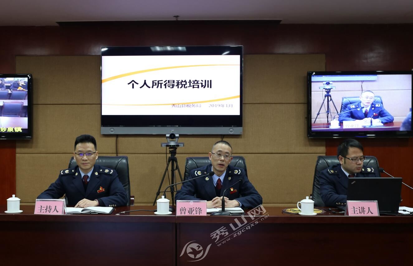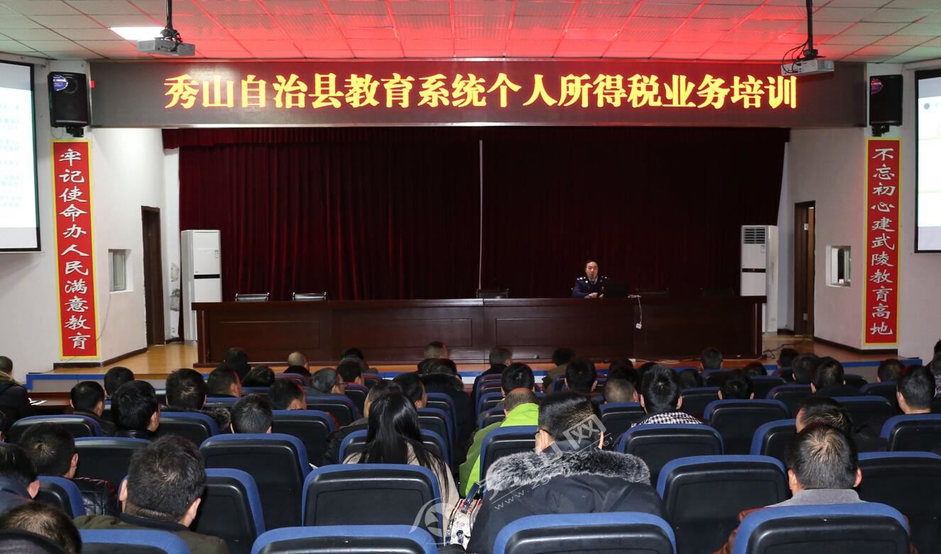 秀山網訊 1月4日上午,秀山縣個人所得稅培訓在縣可視電話會議中心、縣教委、縣稅務局東風路辦公區同時開展,拉開了個人所得稅重點培訓階段工作序幕。36個縣級部門在主會場,24個鄉鎮(街道)以及轄區內衛生院、中小學校具體負責人事、財務的工作人員在分會場參加培訓。全縣教育系統、金融保險、煙草、電力、通信等行業實行集中現場培訓。