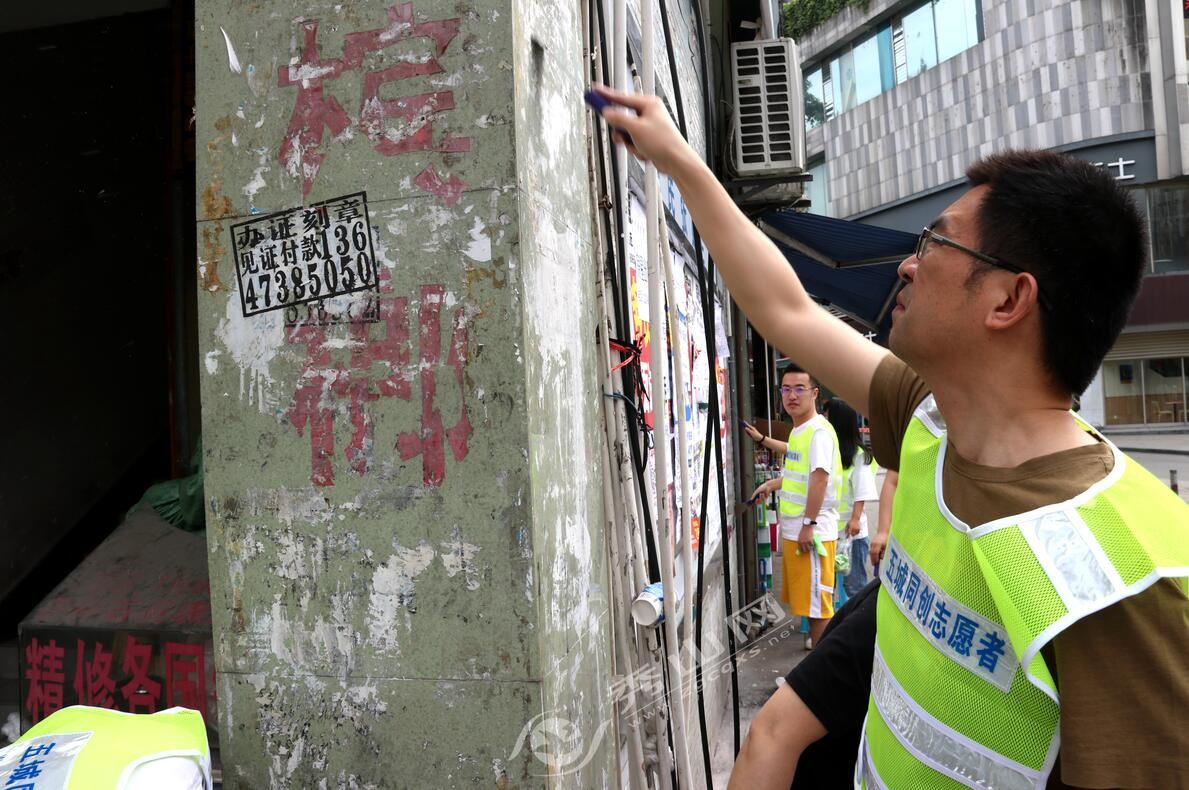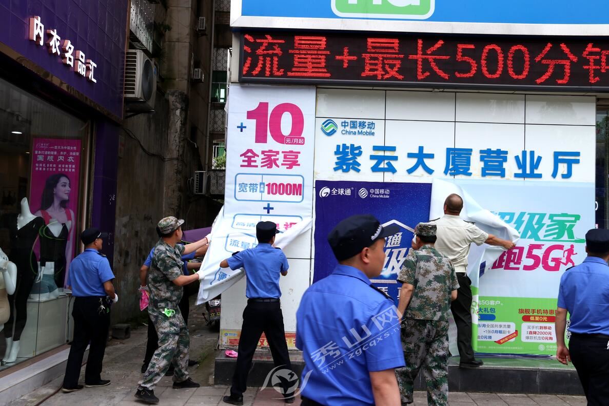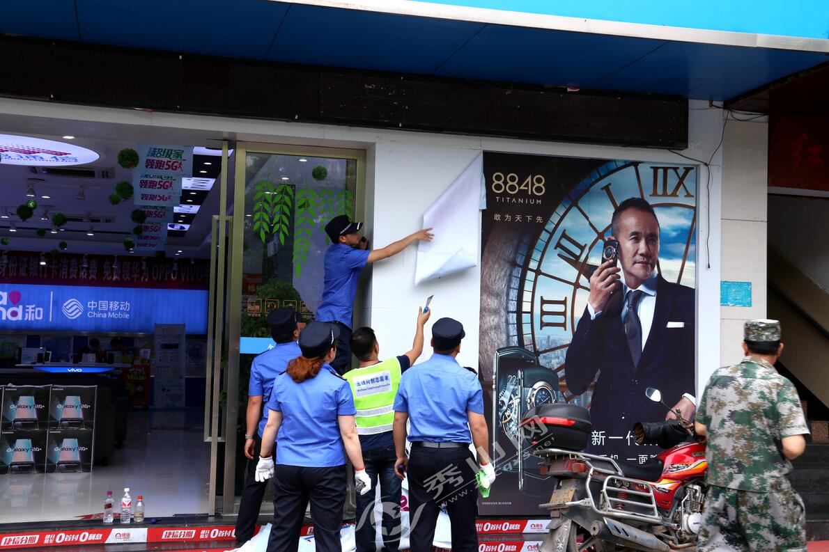 整治行動中,工作人員對沿街商戶、建筑立面、公共設施以及沿線范圍內依附于各類設施上違規設置的樓盤軟體、布幅標語、彩旗、吊旗等廣告進行了集中清理,并向沿街商戶宣傳城市管理的相關規定,動員沿街商戶們對違規廣告自行整改和清理,不少商戶聽取勸告后主動對違規廣告進行了清理。