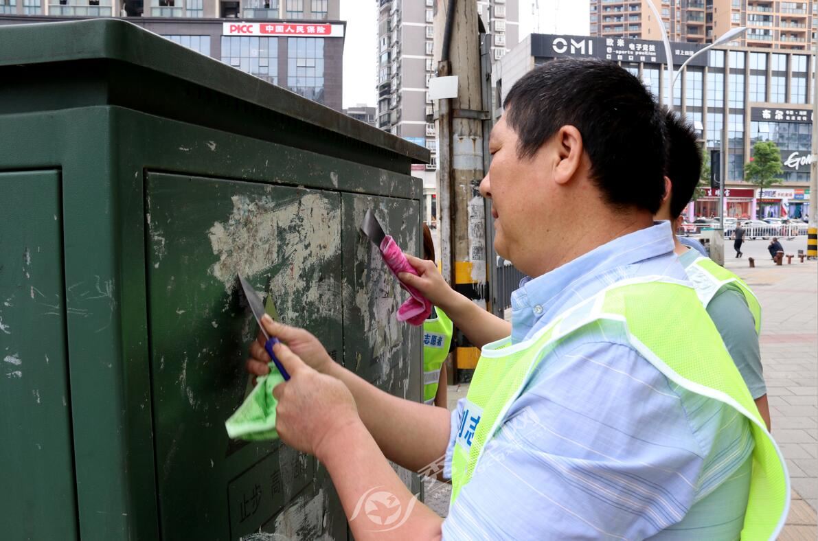 秀山網訊 為切實加強和改進城市管理工作,進一步美化城市環境,5月24日,縣城市管理局組織開展渝秀大道、鳳翔路“牛皮癬”集中整治專項行動,該局240余名干部職工參與行動。