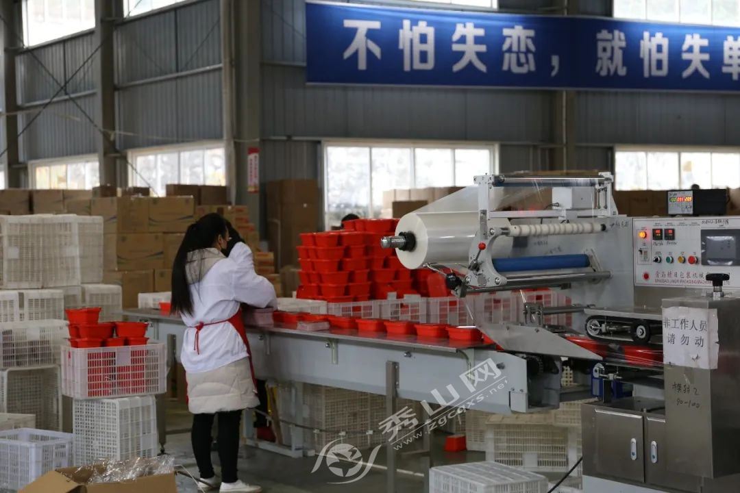 2月22日,筆者在電商網(wǎng)貨示范加工中心看到,原料生產(chǎn)車間、包裝分揀車間一片忙碌,工人們忙而有序的進行原料生產(chǎn)、成品打包分揀作業(yè)。打包好的自熱火鍋、酸辣粉批量快速的被搬運上貨運專車。