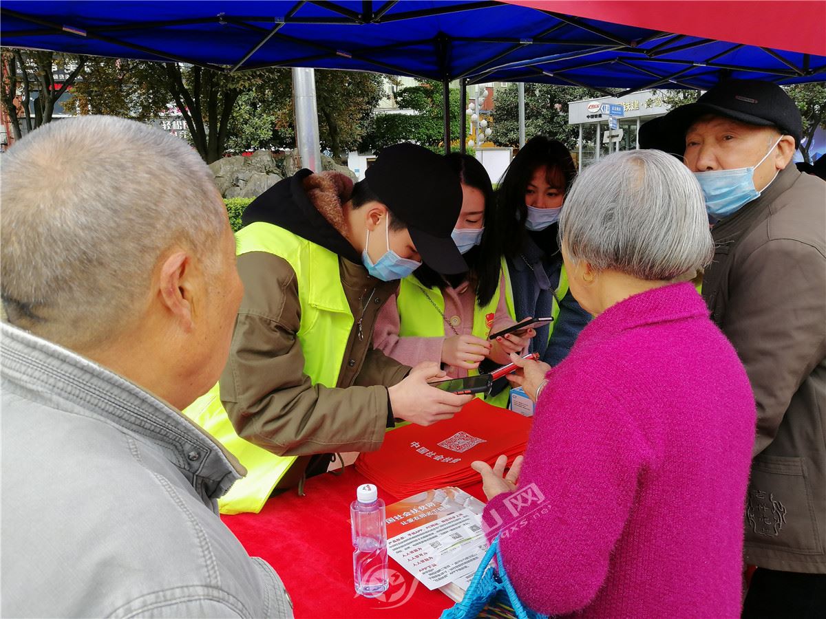 活動中,青年志愿者們通過發放宣傳資料、現場講解等方式,向過往群眾詳細介紹“中國社會扶貧網”的基本情況及政策優勢,并手把手、一對一地輔助他們下載并注冊,引導大家積極參與社會扶貧。活動現場還為過往群眾發放了口罩、酒精消毒液等防疫物資。