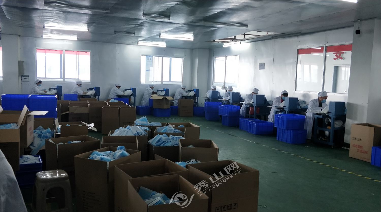 口罩生產(chǎn)企業(yè)正在生產(chǎn)中。