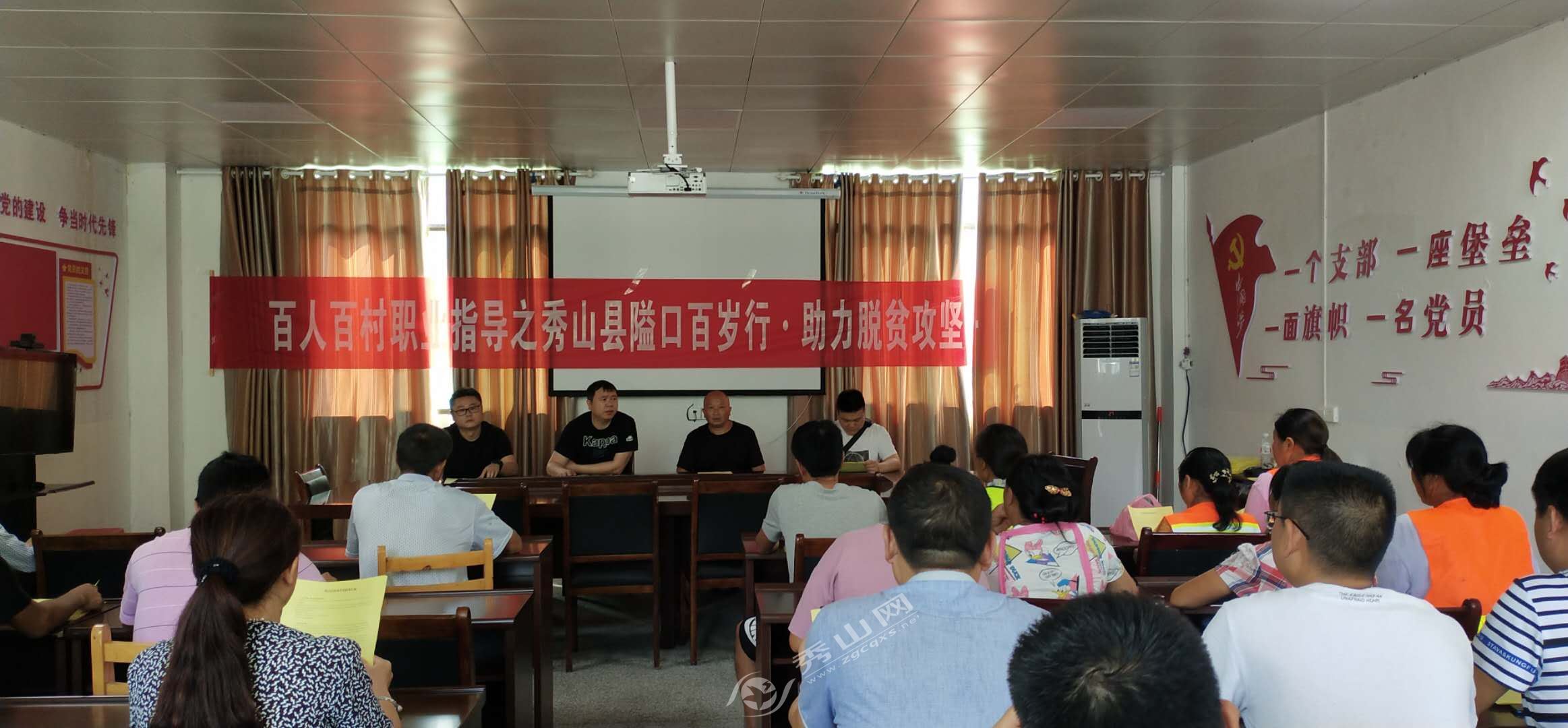 秀山網訊 為進一步做好就業(yè)扶貧工作,助力脫貧攻堅,7月15日,縣就業(yè)和人才中心會同縣公共人力資源市場、隘口鎮(zhèn)勞動就業(yè)社保中心,組織職業(yè)指導人員走進隘口鎮(zhèn)百歲村,開展“職業(yè)指導行·助力脫貧攻堅”活動,精準服務定點攻堅鄉(xiāng)鎮(zhèn)及村居建檔立卡貧困人員。