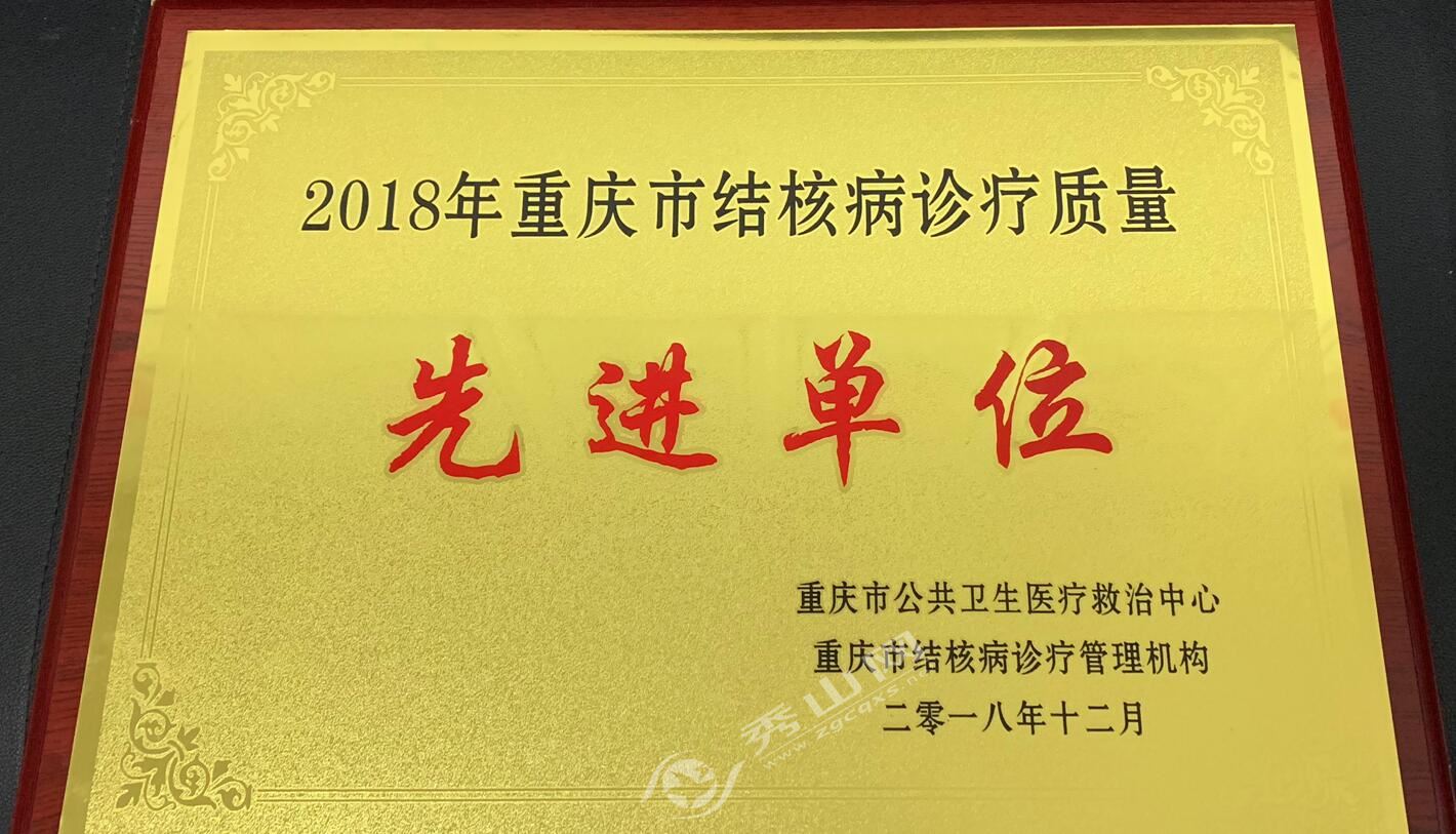 秀山網訊 2018年,在重慶市結核病診療工作督導考核評比中,秀山縣公共衛生救治中心(結核病防治所)被重慶市公共衛生醫療救治中心、重慶市結核病診療管理機構表彰為“2018年度重慶市結核病診療質量先進單位”。