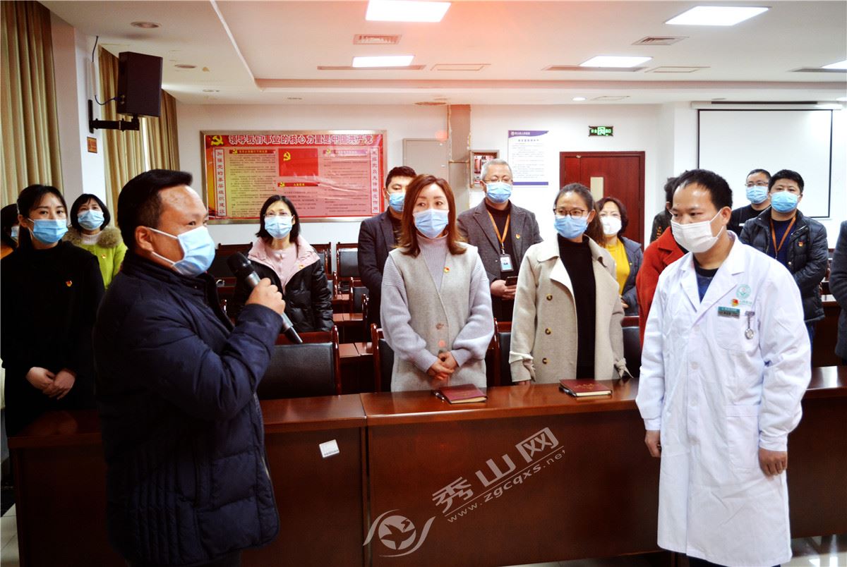 秀山網“我志愿加入中國共產黨……” 3月17日下午3時,一個簡單而莊重的“火線入黨”宣誓儀式,在秀山縣人民醫院感染科病區和行政四樓會議室分別舉行。該院2名抗疫勇士面對黨旗莊嚴宣誓,正式成為光榮的中共預備黨員。