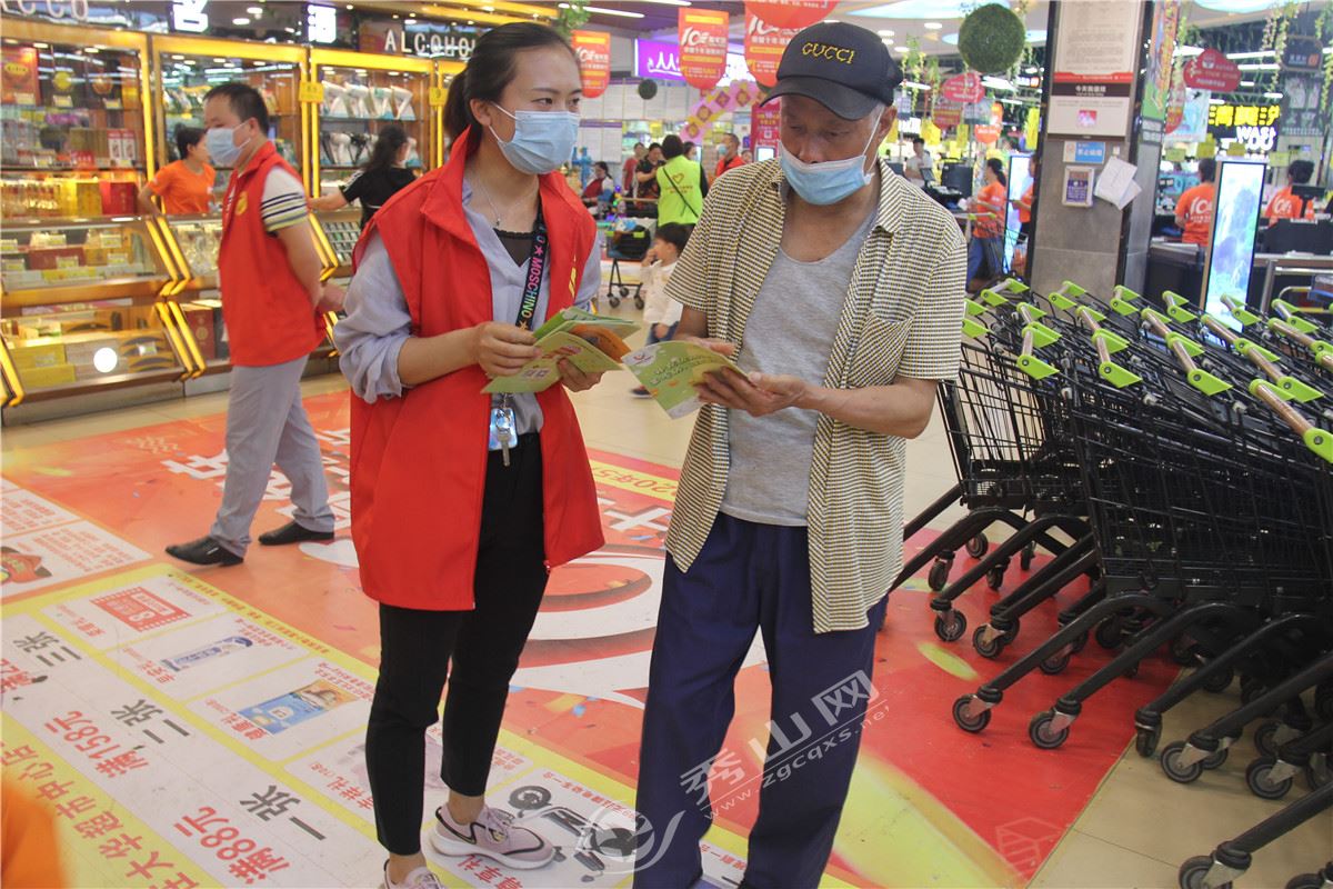 發放營養健康知識宣傳資料。全媒體記者 楊帆 攝