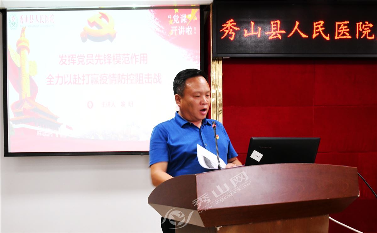 書記黨課強黨性。縣人民醫院黨委書記喻明緊密結合工作實際,以《發揮黨員先鋒模范作用,全力以赴打贏疫情防控阻擊戰》為題上專題黨課,用身邊醫務工作者抗擊疫情的典型事例,闡釋了堅持生命至上、人民至上的白衣天使情懷,進一步增強“四個意識”,凝聚改革發展立新功的共識和力量。