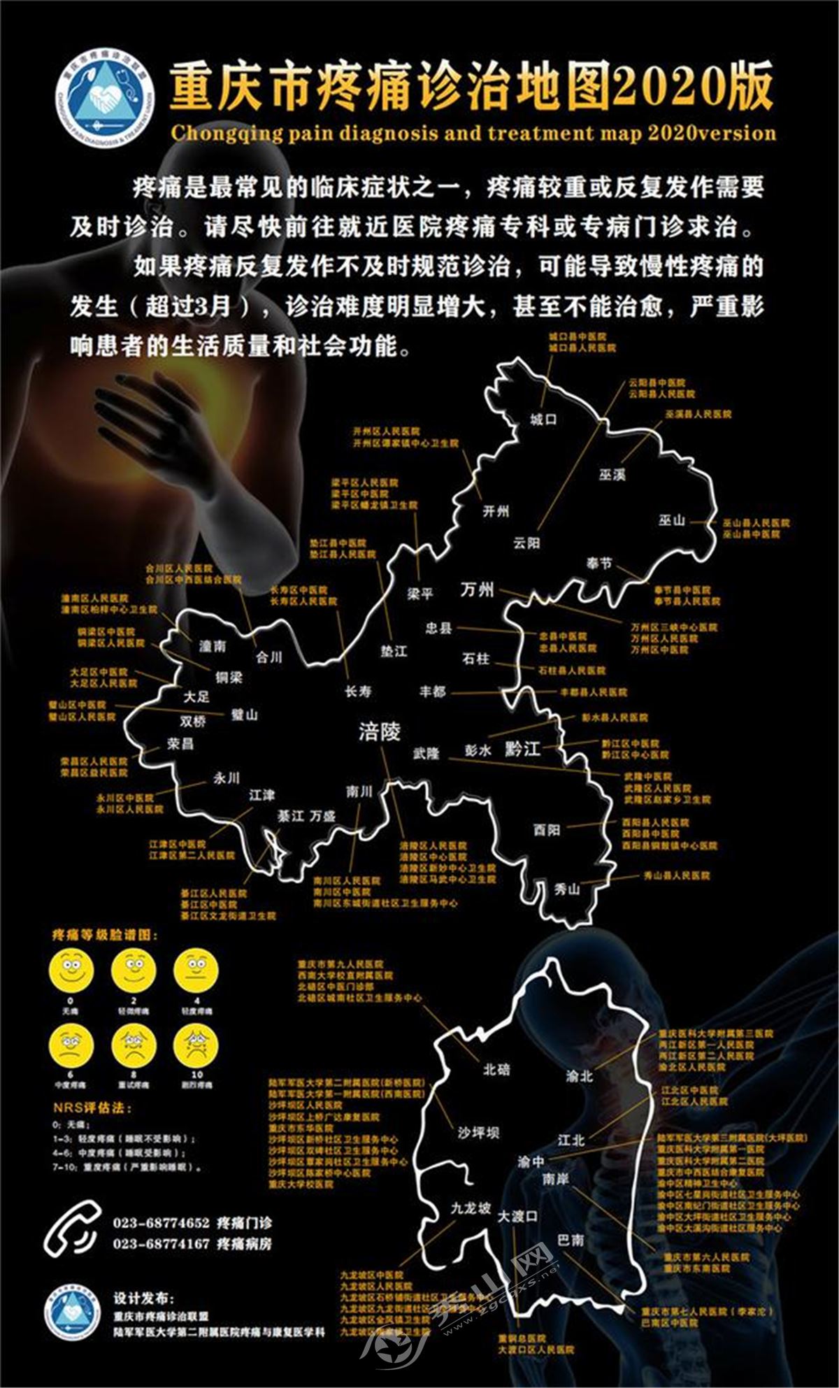 秀山網訊 日前,由重慶疼痛診治聯盟成員單位聯合繪制的重慶市首個“疼痛診治地圖”正式發布,該地圖涵蓋了重慶市主城區和28區縣100余家疼痛診治機構,方便患者可根據地圖指引聯系到就近的醫院和醫生接受規范的疼痛診治。其中,我縣診治機構為縣人民醫院。