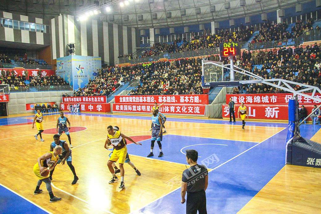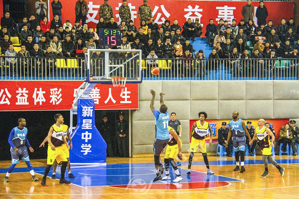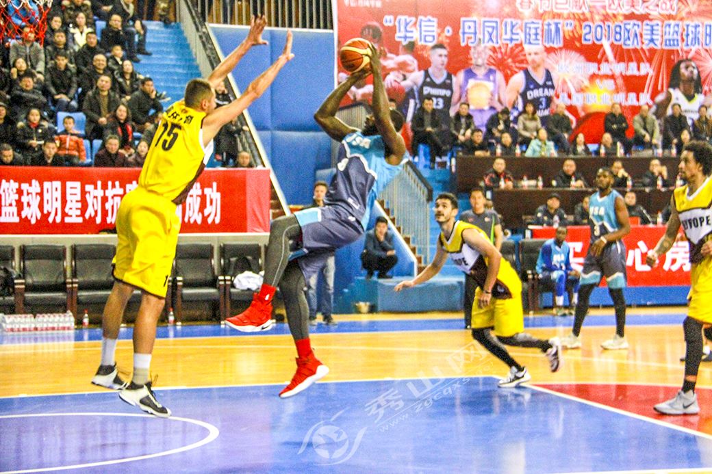 秀山網訊 2月23日晚,一場由重慶市體育局、秀山自治縣人民政府主辦,秀山自治縣文化委承辦的“華信?丹鳳華庭杯”歐美國際籃球明星對抗賽在縣體育館舉行。