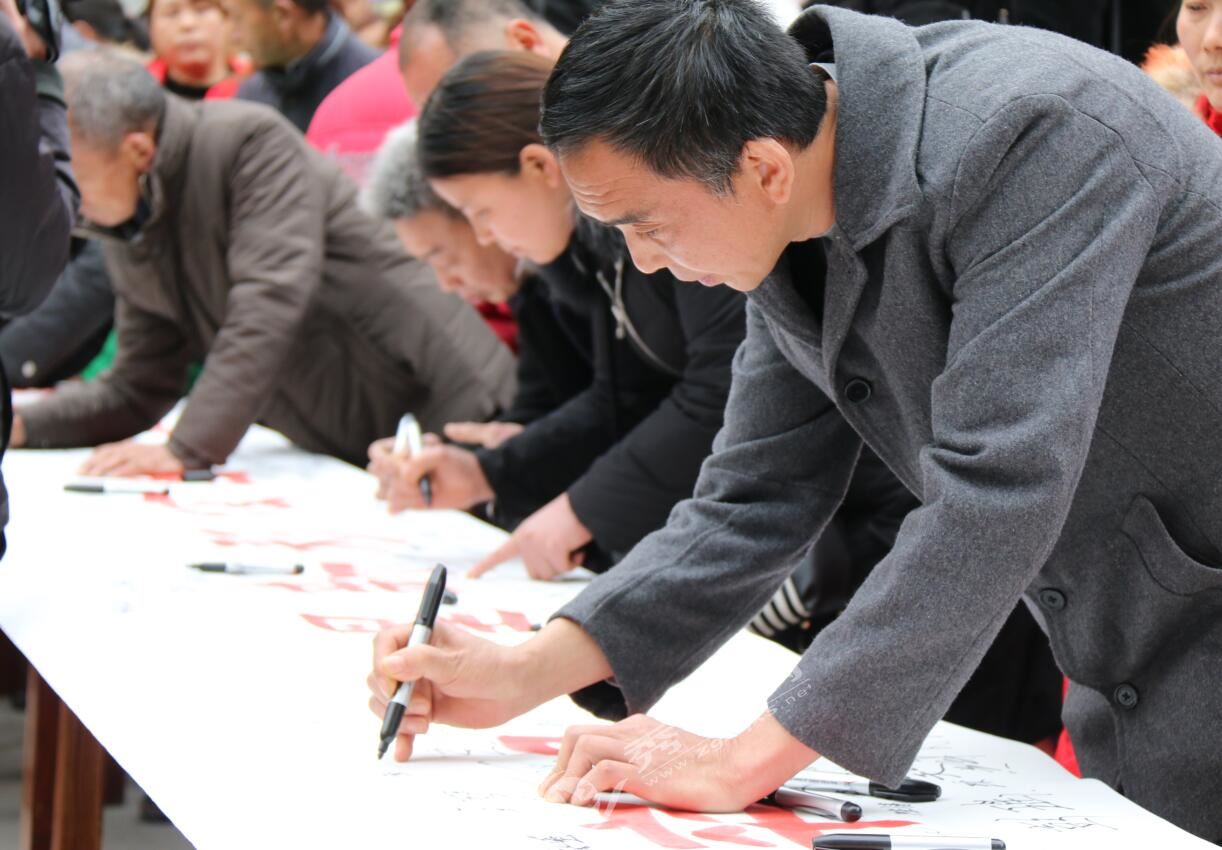 “用拼搏換取理想,憑奮斗鑄就希望。決戰(zhàn)中考,我們準(zhǔn)備好了!”隨后,全體初三師生懷揣飽滿的熱情和昂揚(yáng)的斗志,舉起右拳,激情宣誓。震天的吶喊、堅(jiān)毅的臉龐展現(xiàn)出他們無畏勇氣和堅(jiān)定志氣。最后,全體初三師生、學(xué)生家長(zhǎng)等在標(biāo)語(yǔ)橫幅上簽下自己的名字,以表中考決心。