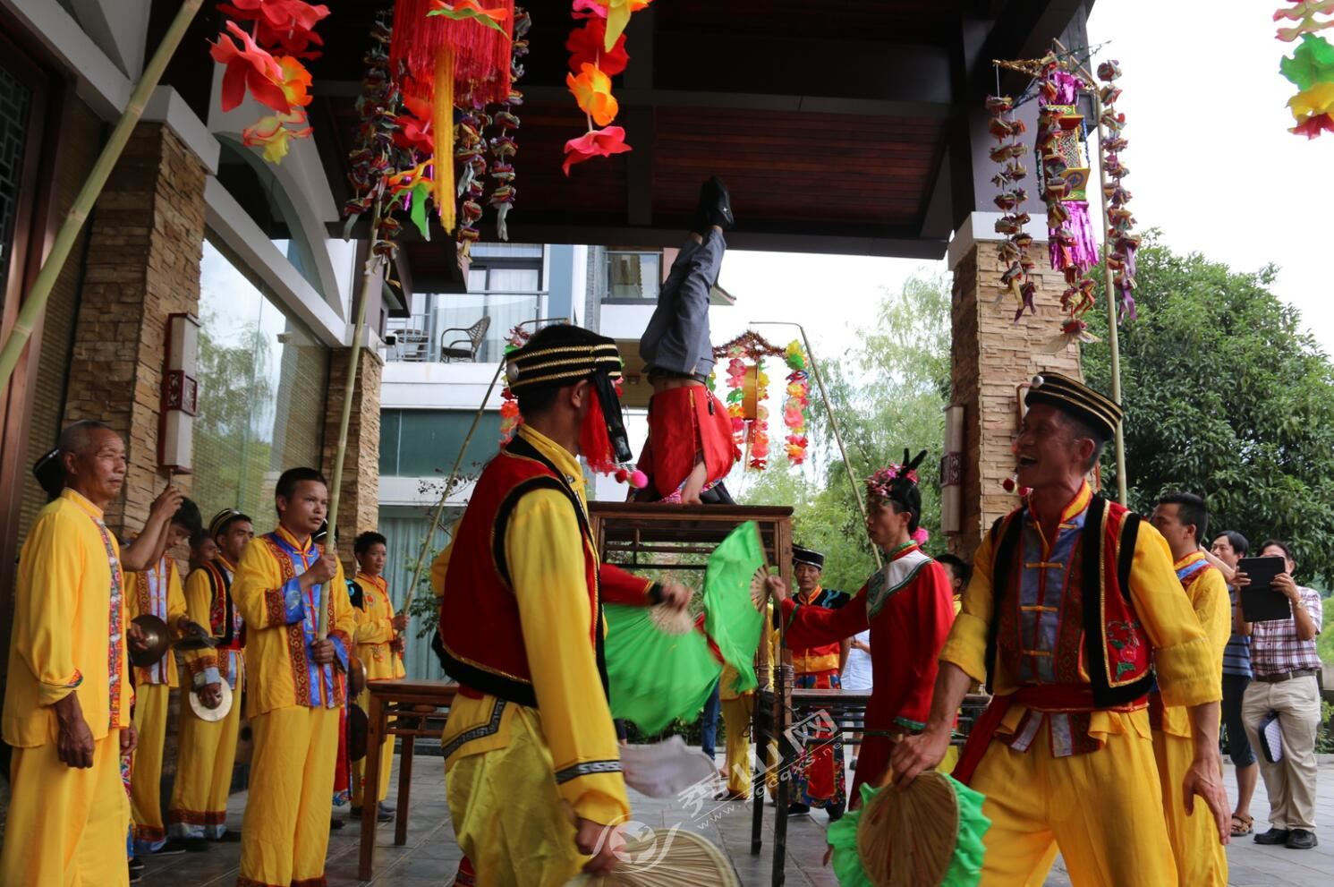 秀山網訊 6月28日,“民間歌謠”專家組一行來到我縣洪安鎮展開調研。在講解員的介紹下,專家組一行親身感受了我縣“上刀山下火海”、攔門酒、儺戲、薅草鑼鼓、苗歌、花燈等特色民間文化藝術。