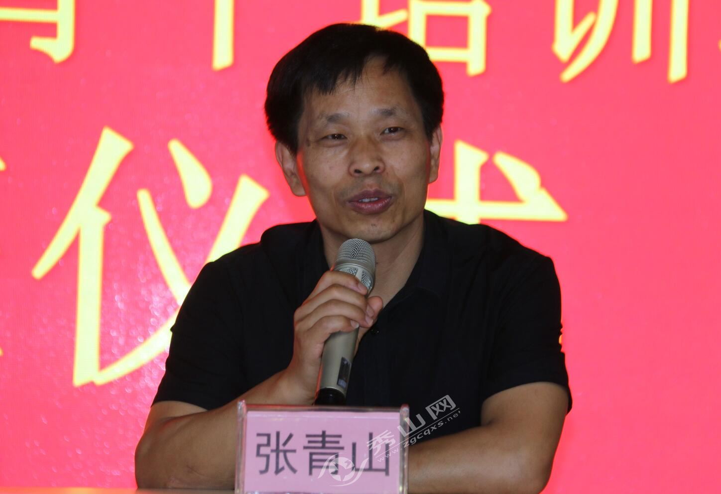 開班儀式上,縣委常委、宣傳部長周毅通過對聯表達了對張青山老師的歡迎和對學員的 希冀之情。他說,在中國書壇,張青山老師以隸書和篆書久負盛名,他的篆隸真行草五種書體均入展國展,可謂鳳毛麟角,他的眼界、格局、學識、人品、書品等值得廣大學員認真學習,希望學員學有所有,不負張青山老師秀山之行。