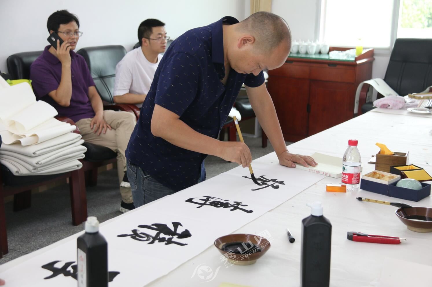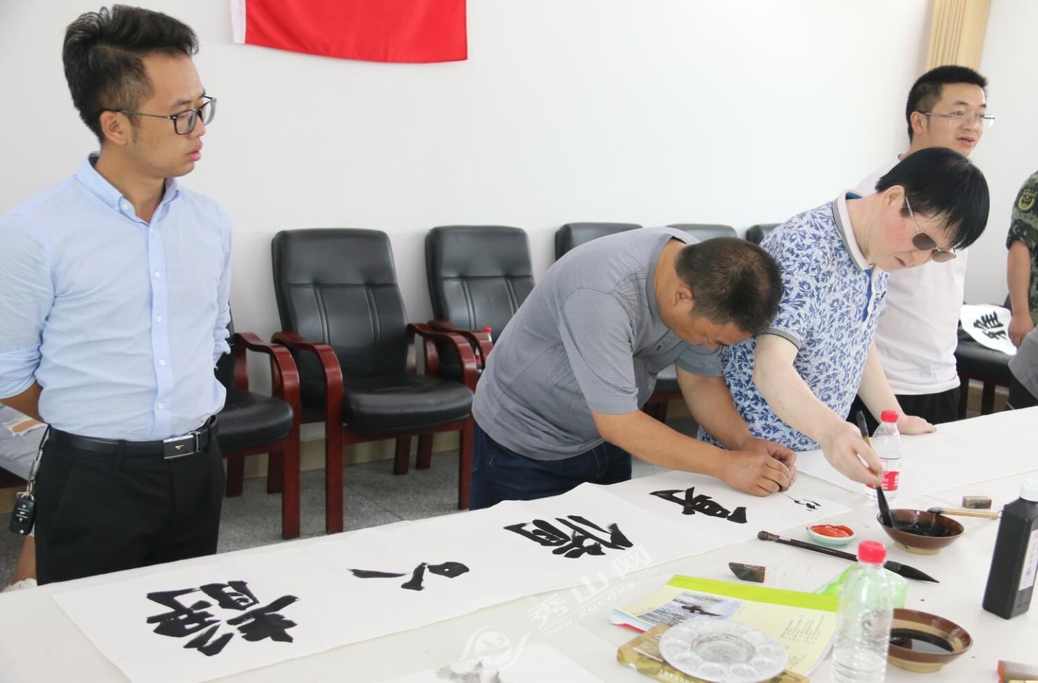 秀山網訊 7月30日,為慶祝“八一”建軍91周年,豐富部隊官兵文化生活,推動軍民融合發展,縣書法家協會的5位書法名家以及2位國畫作家走進縣武警中隊駐地,為駐秀官兵揮毫潑墨,送上豐盛的文化大餐。