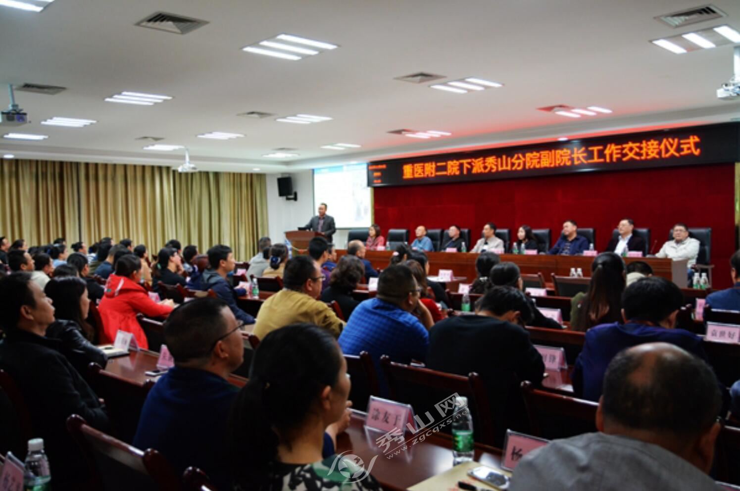 秀山網訊 11月1日下午,秀山縣人民醫院在行政四樓會議室隆重舉行重醫附二院下派秀山分院副院長工作交接儀式,重慶醫科大學附屬第二醫院黨委書記王大剛,秀山縣政府副縣長徐燕,重醫附二院醫政科、財務處、對外辦負責人及秀山縣衛計委領導、縣人民醫院院長雷杰率全院中層干部參加了儀式。