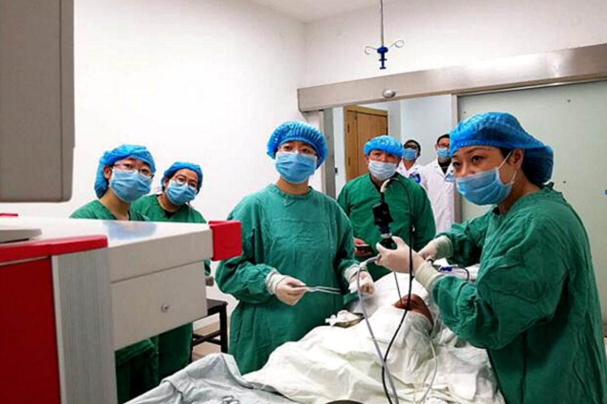 當天上午,重慶市人民醫(yī)院耳鼻咽喉頭頸外科副主任、咽喉嗓音學科帶頭人、主任醫(yī)師、醫(yī)學碩士、碩士生導師方紅雁教授為耳鼻喉科兩名高齡患者主刀手術,在方教授高超的技術下,手術器械像長了眼睛一樣穩(wěn)準狠,清除病變,手術順利結(jié)束,病人返回病房。術后方紅雁教授帶領耳鼻喉科醫(yī)務人員進行了教學查房,診治了咽喉反流的門診病人,并進行了科內(nèi)專業(yè)授課。