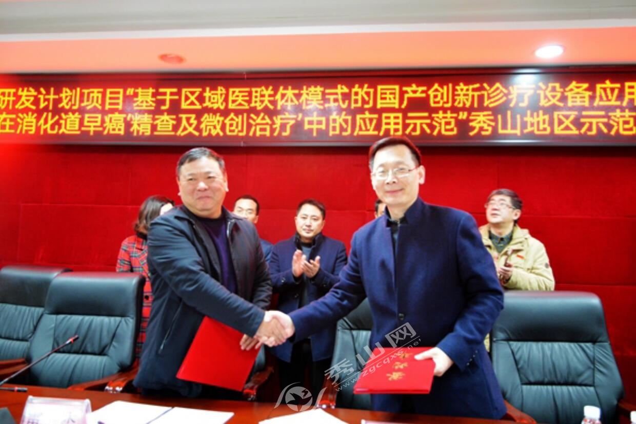 秀山網訊 為推動國產創新診療設備應用示范工作,提高國產設備認可度,建立區域適應型醫療設備配置和服務供給模式,助力重慶市消化道腫瘤早診早治工作的開展,提升基層醫療機構醫療服務能力和醫療技術水平。3月9日,秀山縣人民醫院開展國家重點研發計劃項目“基于區域醫聯體模式的國產創新診療設備應用示范”課題“國產創新診療設備在消化道早癌‘精查及微創治療’中的應用示范”秀山地區示范點啟動及現場培訓會暨重慶市科委民生項目“胃食管反流病規范化診治技術應用推廣”培訓會,秀山縣范圍內2家縣直醫療單位、6家民營醫院及22家鄉鎮醫院近120名醫護人員參加了此次會議。
