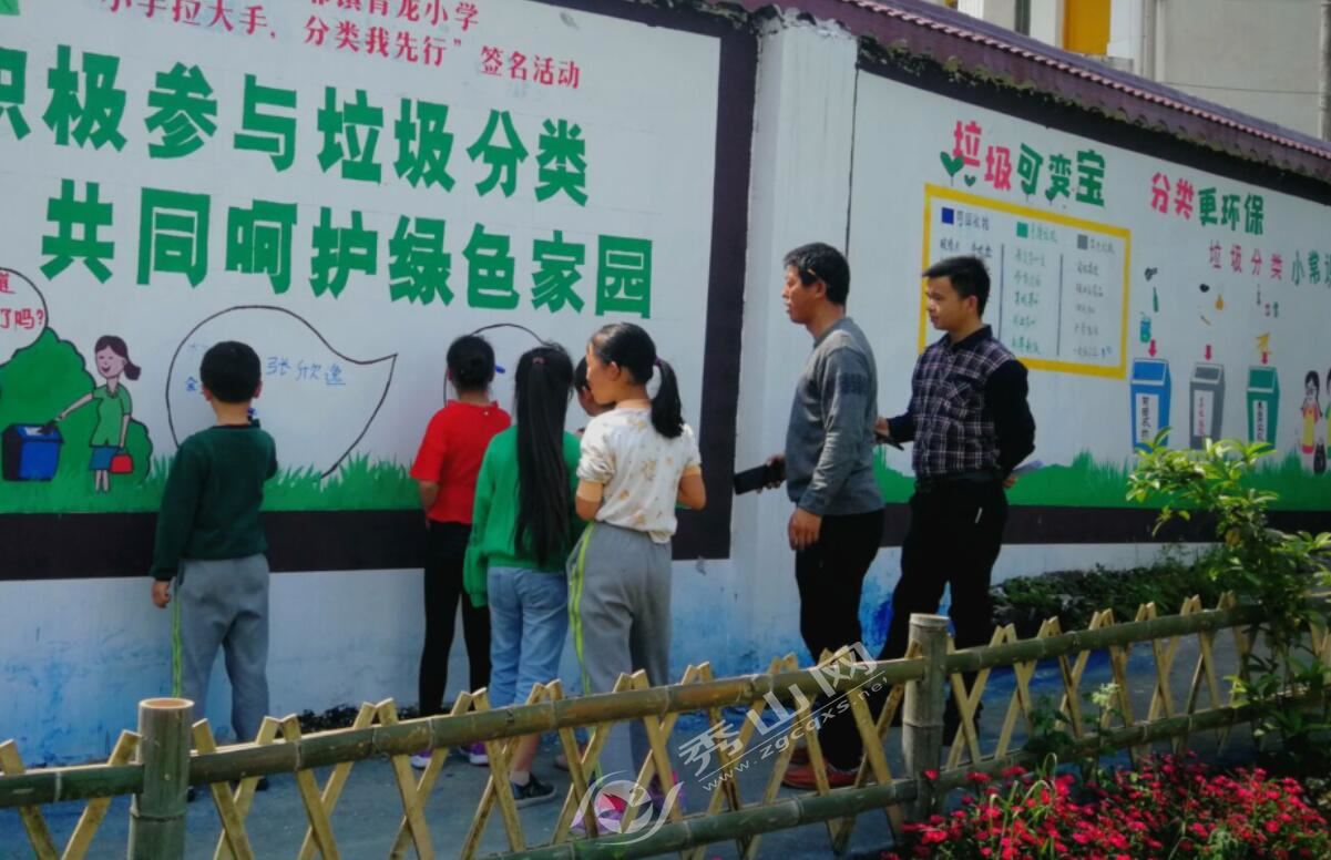 活動中,學生代表在垃圾分類的文化墻上簽字,做出垃圾分類我先行的莊嚴承諾。