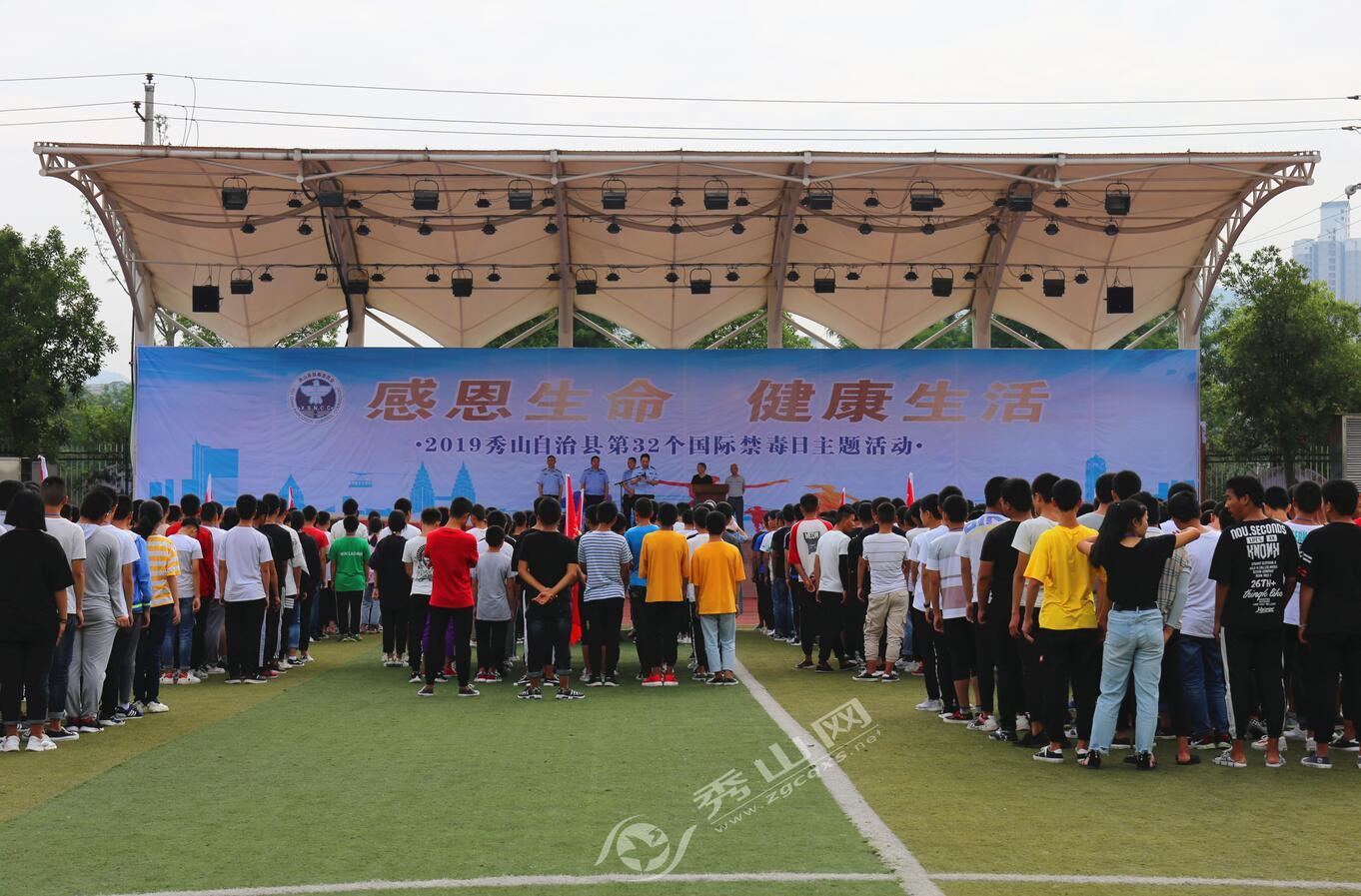 秀山網訊 6月26日,秀山職教中心舉行“健康人生?綠色無毒”為主題的國際禁毒日法治宣傳活動。縣禁毒辦、縣教委、縣衛生健康委、秀山站鐵路派出所等單位的工作人員及秀山職教中心師生參加了活動。