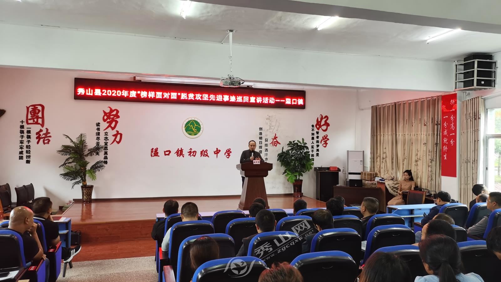 秀山網訊 9月14日,秀山縣2020年度“榜樣面對面”脫貧攻堅先進事跡巡回宣講活動走進隘口鎮隘口中學,由致富帶頭人、扶貧干部、駐村第一書記、脫貧戶等組成的宣講團成員面對面向基層干部講述扶貧故事和脫貧經歷,傳遞了滿滿的脫貧正能量。