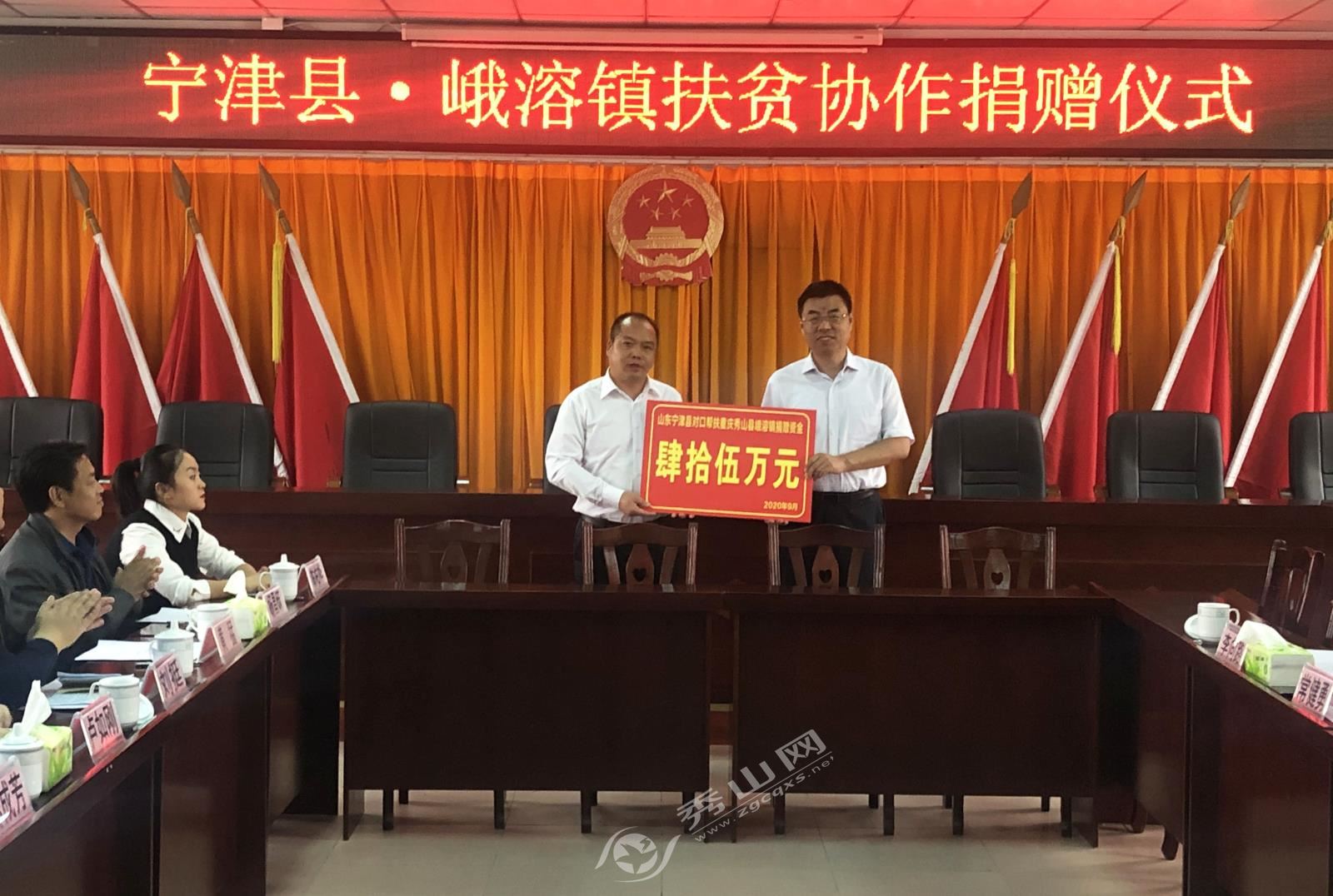 座談會上,雙方聽取了兩地經濟社會發展及峨溶鎮脫貧攻堅工作開展情況匯報。王剛代表寧津縣為峨溶鎮捐贈幫扶資金45萬元。