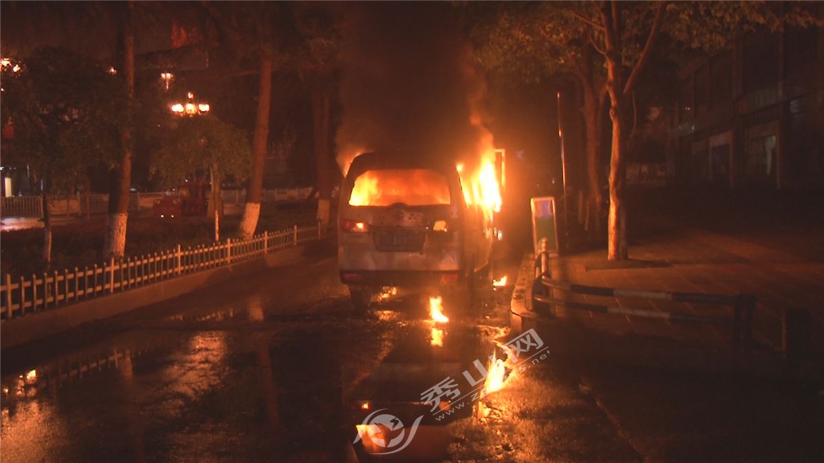 秀山網訊 10月9日凌晨5時48分,縣消防救援大隊接到群眾報警稱:中和街道萊凱酒店旁有一輛面包車著火。接到報警后,縣消防救援大隊指揮中心立即調派1輛搶險救援消防車、1輛泡沫消防車和1輛水罐消防車及19名消防指戰員趕赴現場開展救援。