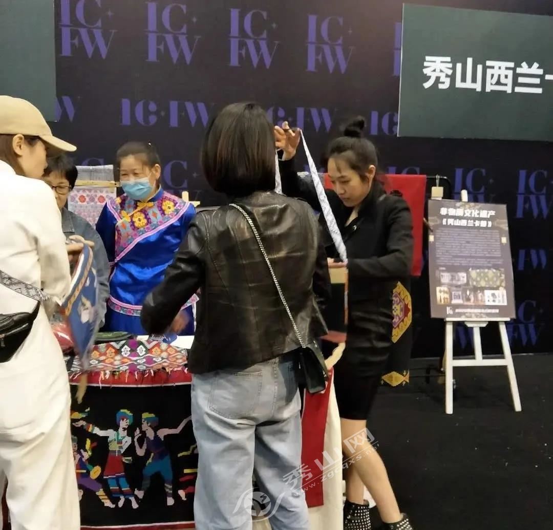 展銷期間,秀山土家織錦獲得了參加時裝周眾多嘉賓、游客的關注和喜愛。摸一摸面料,掂一掂做工,穿著時尚的游客試著挎上濃濃土家風情的挎包之后,就喜不自勝的掏腰包購買。