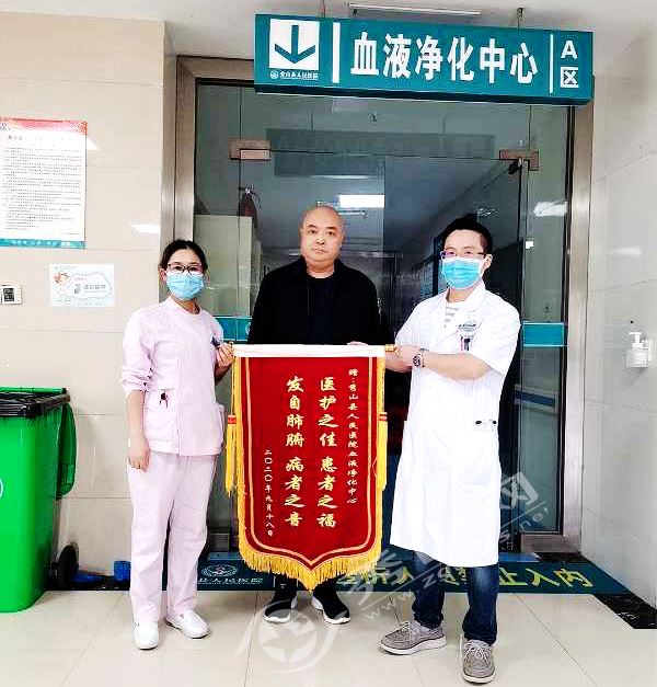 秀山網(wǎng)訊 近日,患者騰某某帶著一面錦旗來到秀山縣人民醫(yī)院血液凈化中心,感謝全體醫(yī)護(hù)人員對(duì)自己的精心治療及悉心照顧,讓自己重拾對(duì)生活信心與希望。