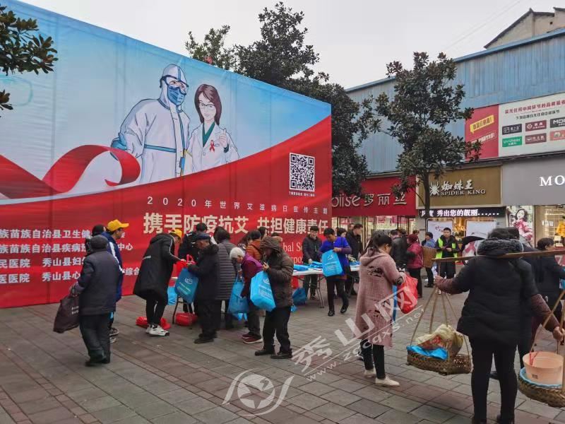 秀山網訊 2020年12月1日是第33個“世界艾滋病日”。為進一步推動全縣艾滋病防治工作,營造全民參與艾滋病防治工作的良好氛圍,12月1日上午,縣衛生健康委聯合縣禁毒辦、縣人民醫院、縣中醫醫院、縣婦幼保健院等單位在花燈廣場開展了以“攜手防疫抗艾 共擔健康責任”為主題的艾滋病防治宣傳活動。