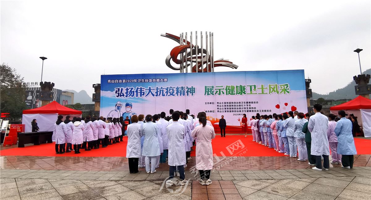 秀山網訊 為弘揚偉大抗疫精神,奮力奪取抗疫斗爭全面勝利,展示衛生健康系統醫療隊伍良好的精神風貌和職業風范,12月4日上午,由縣衛生健康委、縣紅十字會、縣計劃生育協會聯合主辦的縣衛生健康系統2020年衛生應急技能大賽在武陵廣場舉行,來自全縣衛生健康系統的55個代表隊、83名選手參加了本次技能大賽。
