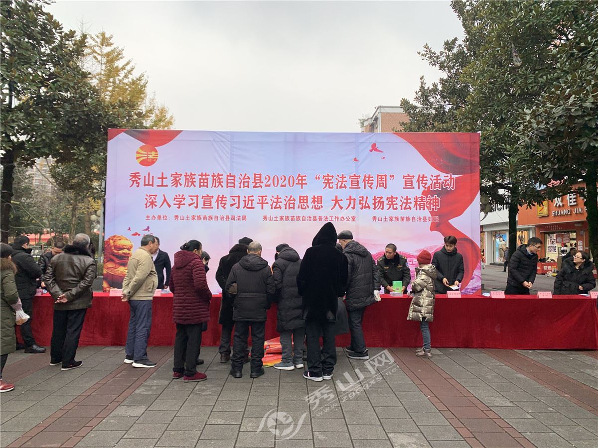 秀山網訊 近日,縣司法局、縣普法辦、縣婦聯聯合律師行業在花燈廣場開展以“深入學習宣傳習近平法治思想,大力弘揚憲法精神”為主題的“憲法宣傳周”宣傳教育活動。