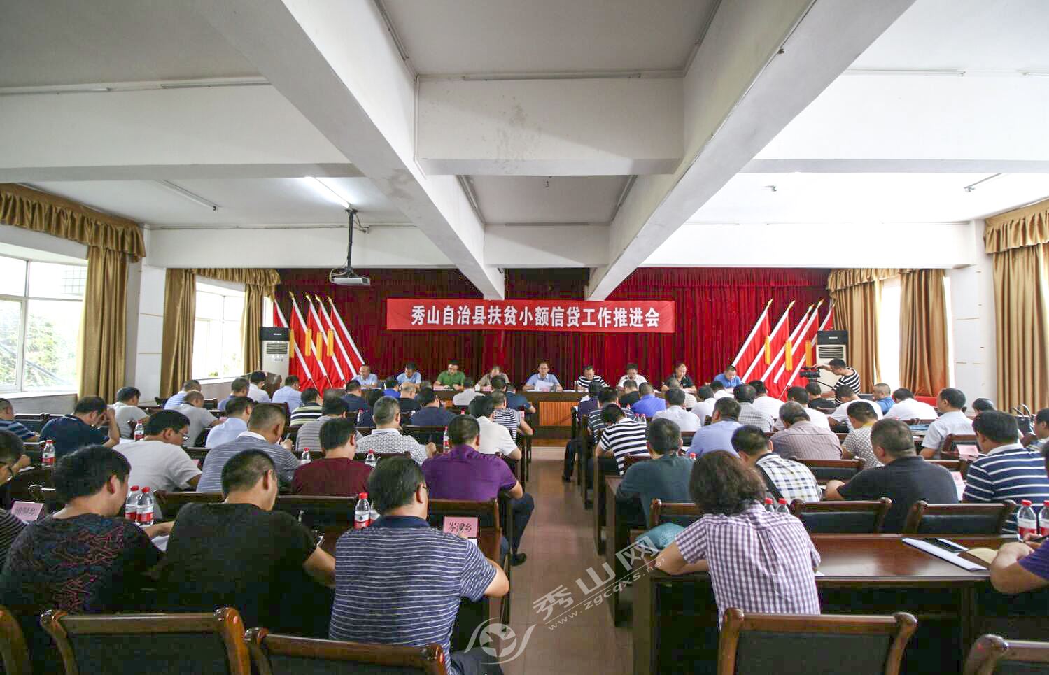 秀山網訊 為加快推進全縣扶貧小額信貸工作,圓滿完成年度既定目標任務,9月20日,全縣扶貧小額信貸現場推進會在鐘靈鎮召開。縣委常委、常務副縣長付強出席會議并講話,縣政府副縣長王兵主持會議。