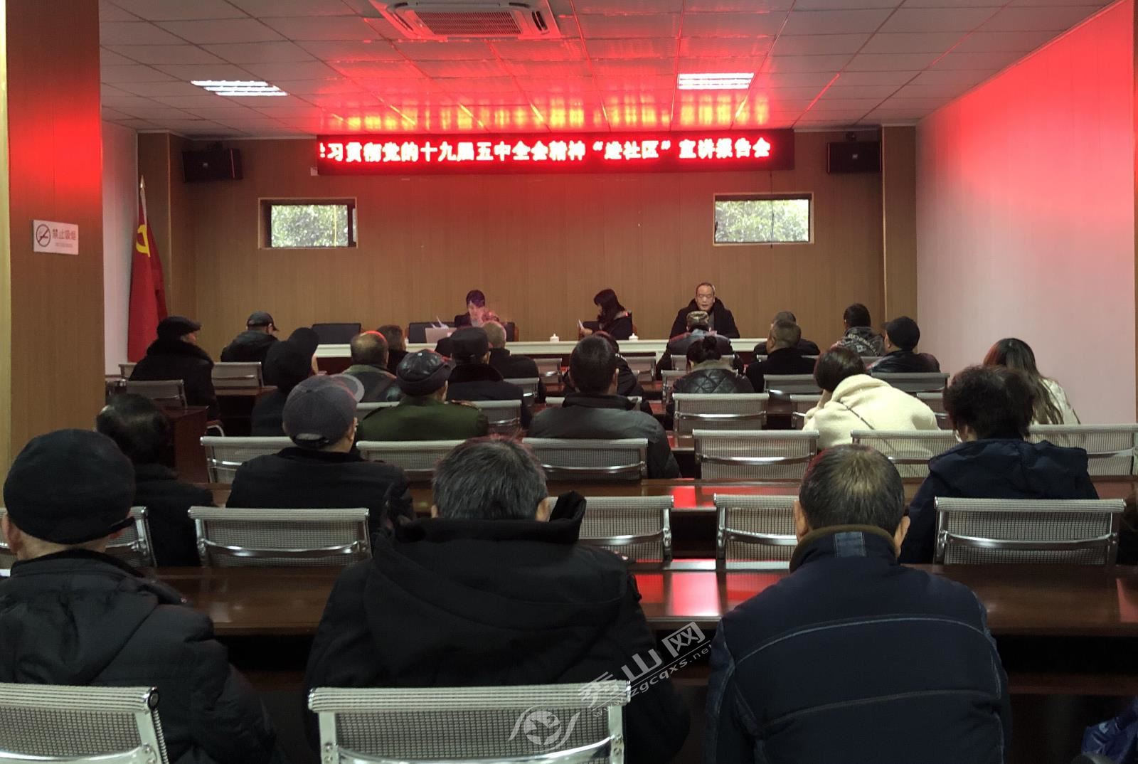秀山網訊 為迅速在全市掀起學習宣傳貫徹黨的十九屆五中全會精神熱潮,著力推動學習貫徹黨的十九屆五中全會精神走深走實,12月8日上午,由市委宣傳部組織,市民政局牽頭的“進社區”宣講分隊,走進我縣12個社區開展黨的十九屆五中全會精神宣講活動。
