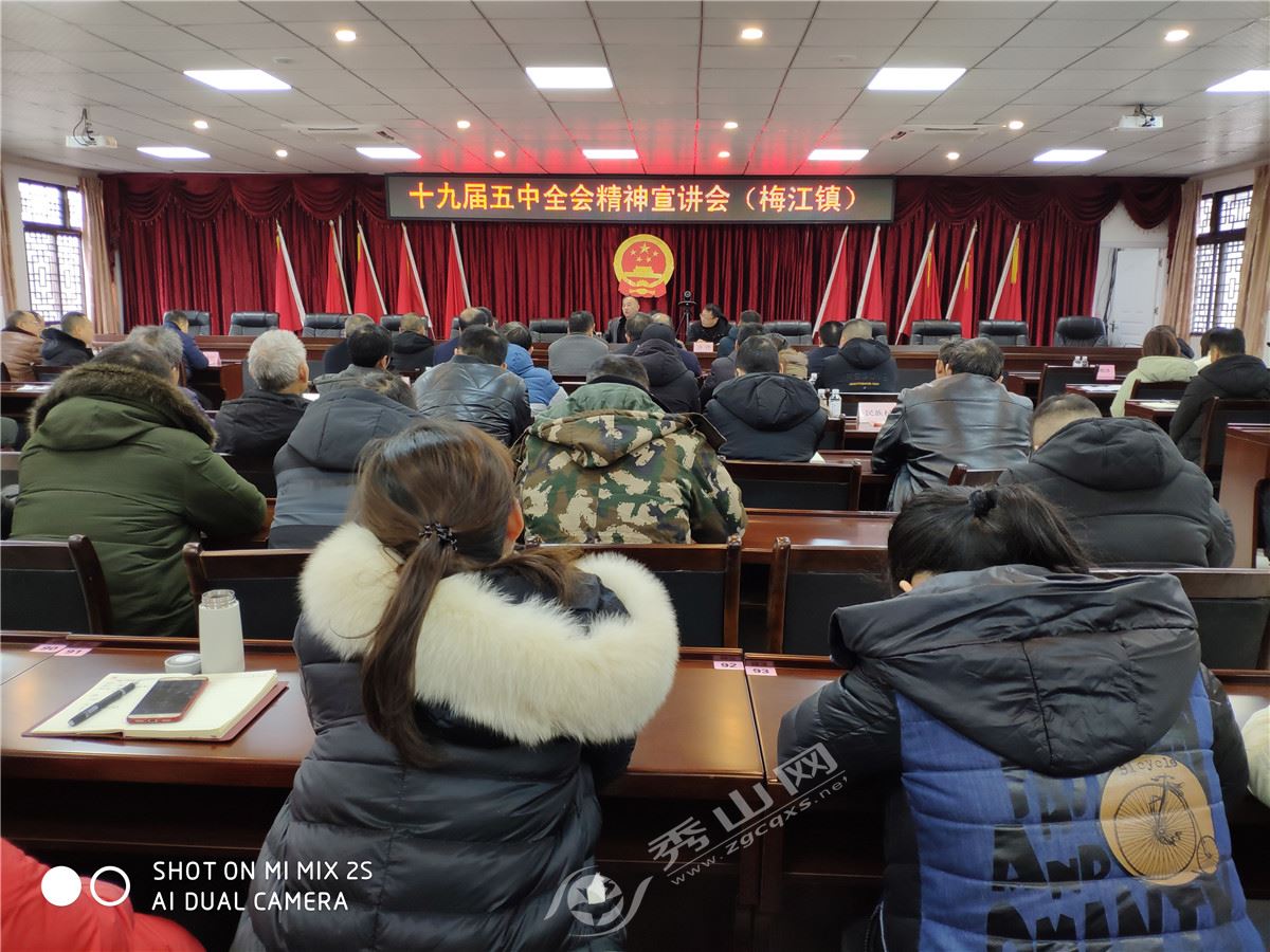 秀山網訊 12月17日,梅江鎮舉辦黨的十九屆五中全會精神宣講會。縣委宣講團成員、縣農業農村委主任吳勇主持宣講,全鎮18個村(居)“一戶挑”書記、主任、副書記以及鎮機關全體干部職工共110余人參會。