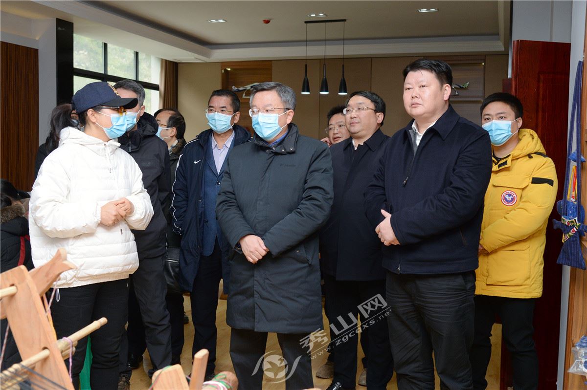 副市長李波(前排右二)調研隘口鎮非遺工坊。全媒體記者 魯詩勤 攝