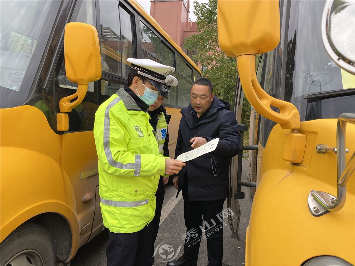秀山網訊 為進一步加強校車安全管理,12月18日上午,縣交巡警大隊中和公巡中隊深入學校對校車安全進行專項檢查。