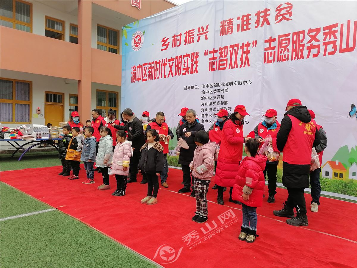 秀山網(wǎng)訊 12月24日,由渝中區(qū)新時代文明實踐中心、渝中區(qū)委宣傳部、渝中區(qū)交通局、秀山縣委宣傳部、隘口鎮(zhèn)政府指導,渝中區(qū)志愿服務聯(lián)合會主辦、渝中區(qū)至善行志愿服務中心承辦的“志智雙扶”新時代文明實踐志愿服務活動走進秀山縣隘口鎮(zhèn),為山村小學留守兒童帶去了物質(zhì)關懷和精神鼓勵。
