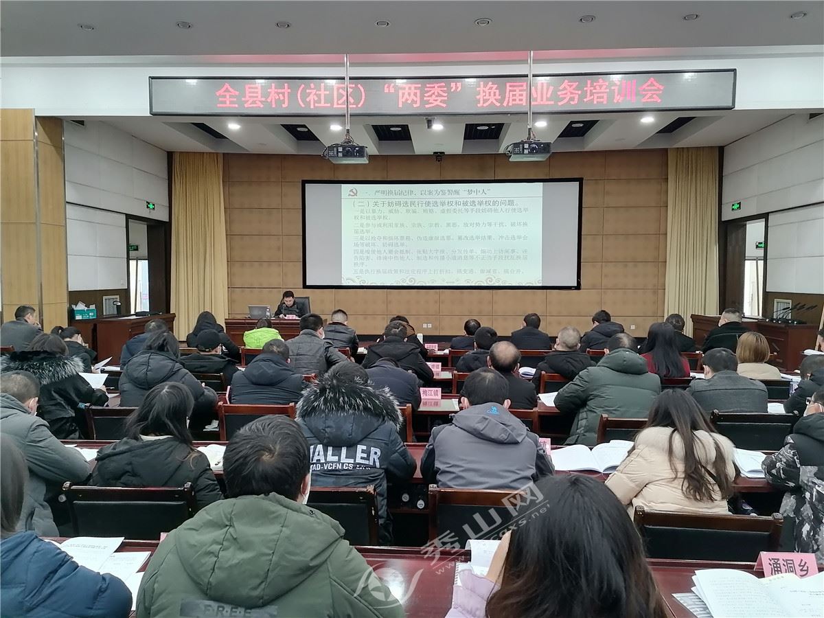 秀山網訊 繼全縣村(社區)“兩委”換屆工作會召開之后,1月8日下午,我縣召開了全縣村(社區)“兩委”換屆業務培訓會,就相關業務知識進行培訓,確保全縣村(社區)“兩委”換屆選舉工作高質量完成。
