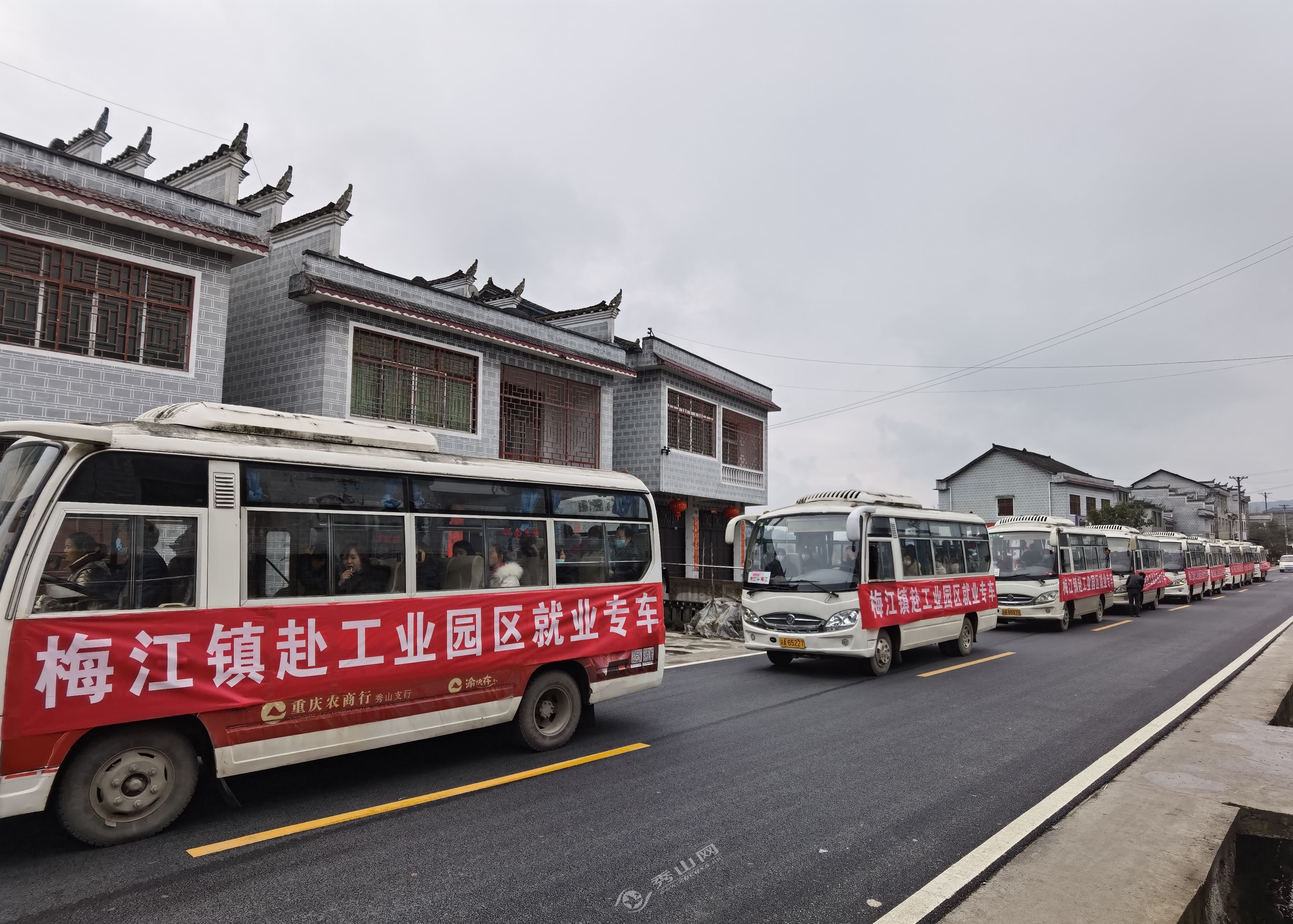 秀山網訊 “出發!”3月3日上午,20輛大巴車浩浩蕩蕩從梅江政府出發,載著18個村居的500余人前往工業園區參加招工活動。