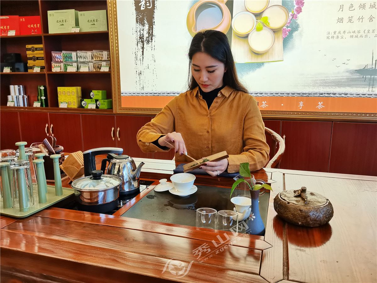 “今年的新茶已經上市了,針對于以往峨溶的茶葉以外,今年特別推出了清溪葛麻高山茶,清溪葛麻高山茶都是生長在800米以上的高山,入口清香,色澤翠綠。”邊城秀芽門店經理唐鳳告訴記者。