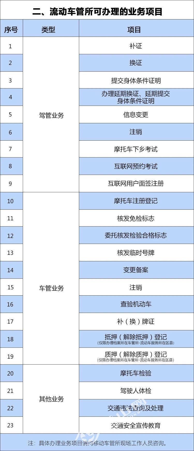 秀山網訊 為方便駕駛人辦理補(換)證、變更備案、抵押(解除)登記、摩托車檢驗等車駕管相關業務,市交巡警總隊根據群眾需要制定流動車管所2021年4月服務計劃,在各區縣共組織24場車駕管上門服務。其中,4月7日上午10點至12點,將在秀山龍池公巡中隊門口辦理相關業務,請市民根據業務辦理需求,查看服務時間,按時前往辦理相關業務。