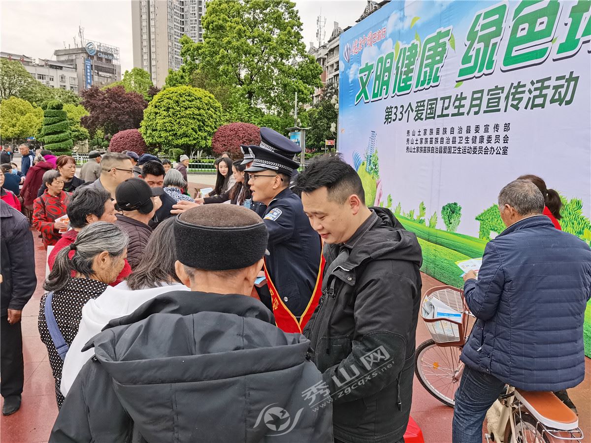 秀山網訊 今年4月是我國第33個愛國衛生月。為進一步引導廣大市民自覺養成良好的衛生習慣和健康的生活方式,推動我縣愛國衛生事業發展,4月15日上午,縣愛衛辦、縣委宣傳部、縣生態環境局、縣衛生健康委等單位,在花燈廣場開展以“文明健康,綠色環保”為主題的愛國衛生月宣傳活動。