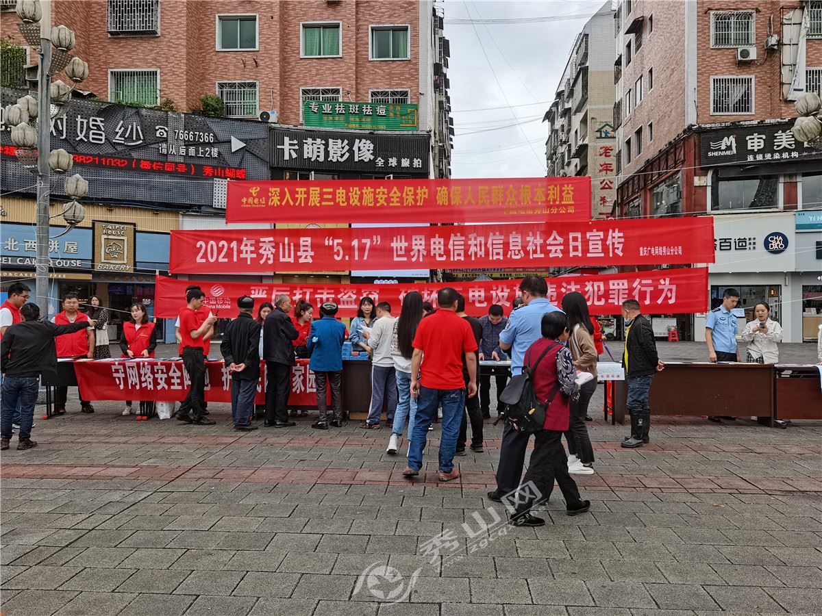 秀山網訊 5月17日是世界電信和信息社會日。為深入開展電力電信廣播電視設施安全保護工作,確保 “三電”設施安全運行,5月17日下午,縣公安局三電辦聯合縣文化旅游委、縣委政法委、市場監管局等單位在花燈廣場開展2021年電力電信廣播電視設施安全保護宣傳活動。