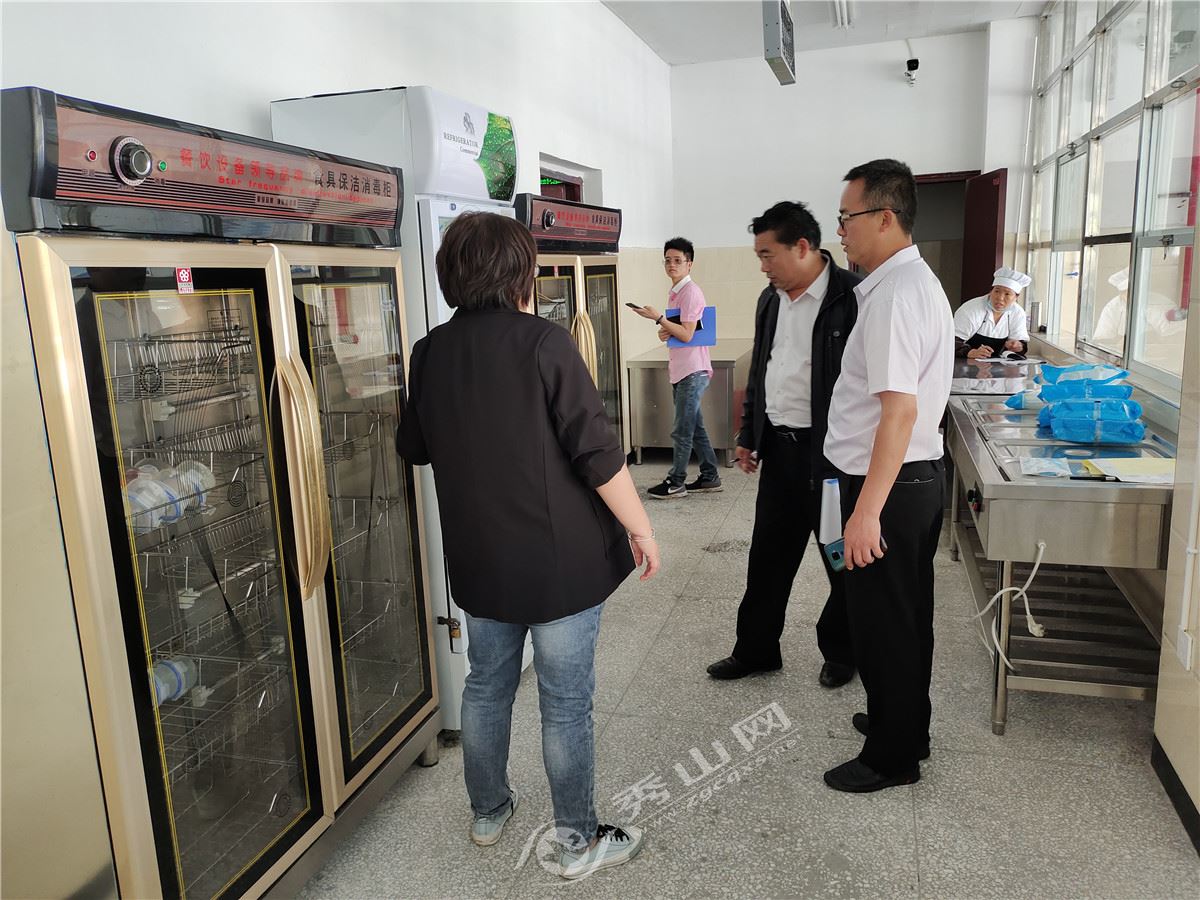 秀山網訊 為進一步強化學校食品安全管理,全力消除校園食品安全隱患。5月19日下午,洪安鎮(zhèn)組織鎮(zhèn)食藥監(jiān)、應急辦工作人員圍繞“責任落實、人員管理、場所環(huán)境、采購與儲存、加工制作、餐具安全”等指標,對該鎮(zhèn)中小學食堂安全工作作全方位檢查,特別對食品保質期、食品留樣等細節(jié)問題一一進行了檢查,確保師生飲食安全。
