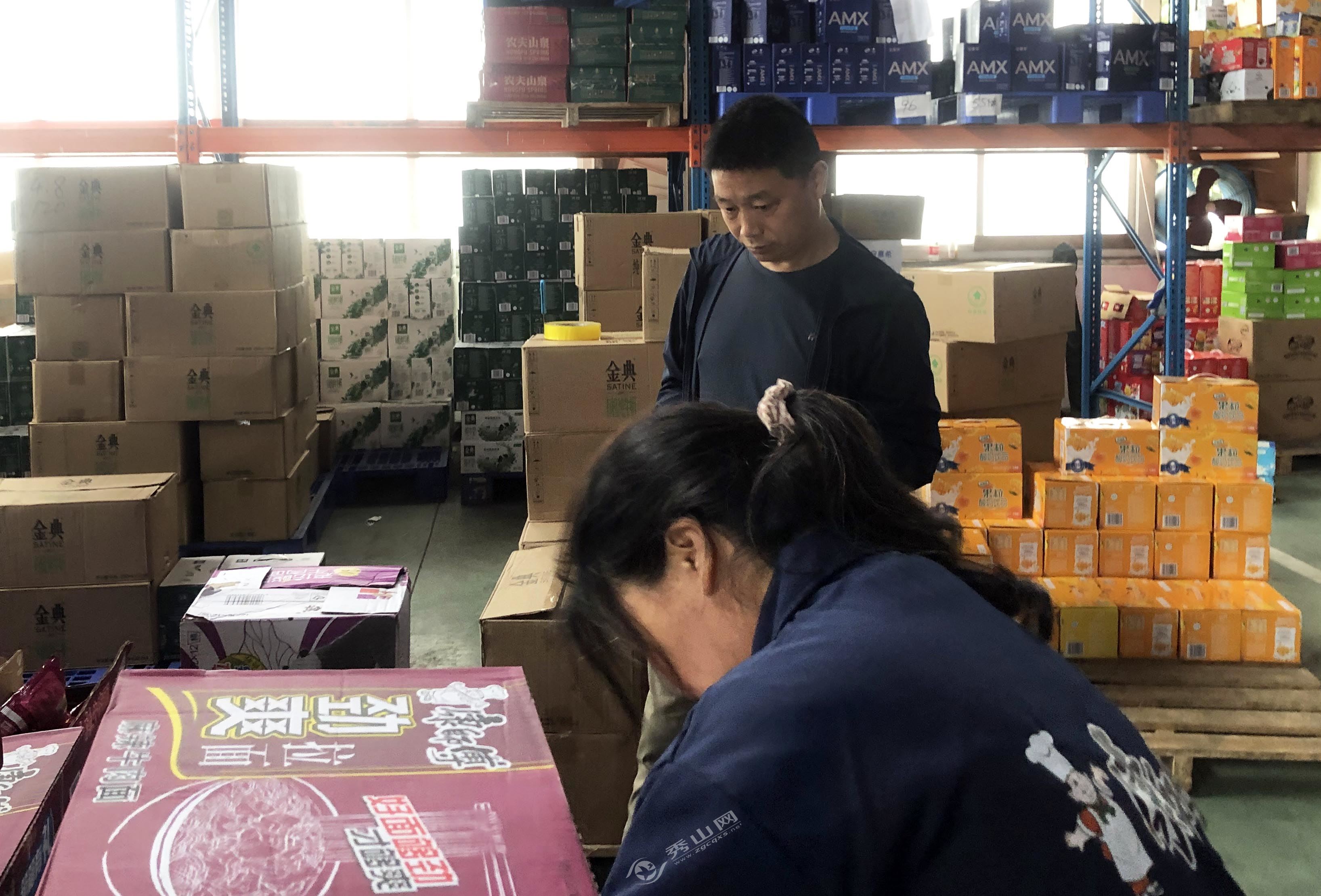日前,記者在登峰商貿有限公司的臨過期商品庫看到,工作人員正在對臨近過期和已過期的商品進行分類登記打包,然后進行處理。