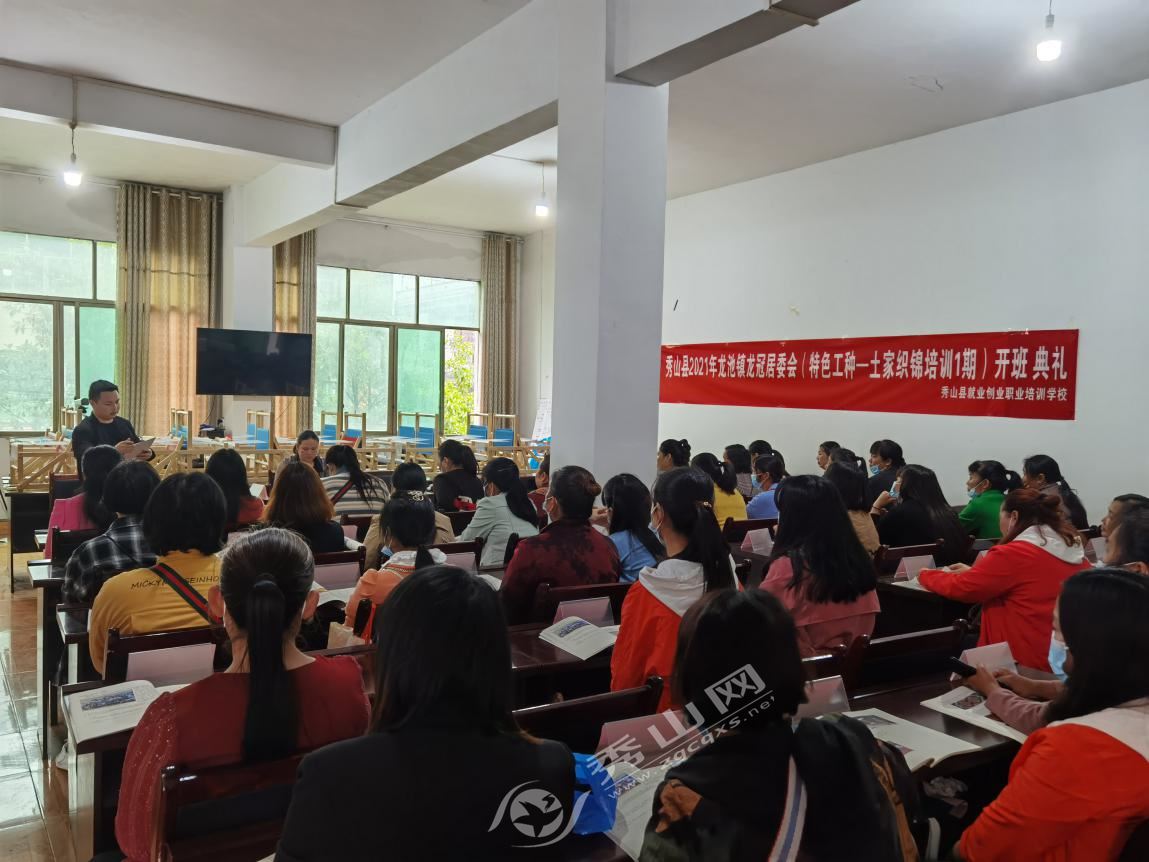 秀山網訊 5月25日,龍池鎮龍冠居委會特色工種——土家織錦正式開班培訓,此次培訓共計15天,48名學員參加。