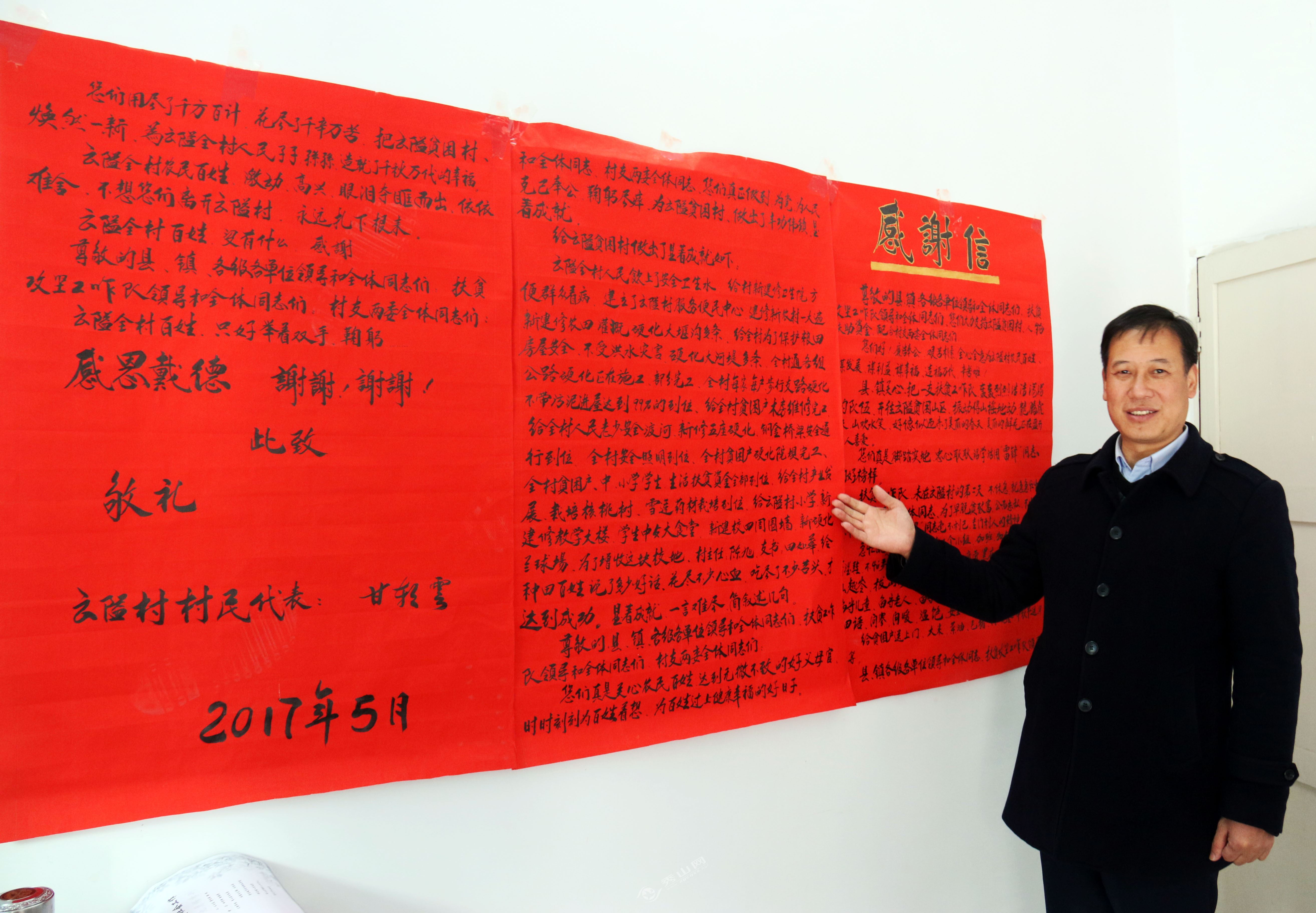 “大家看到村上基礎設施大改觀,紛紛想表達對陳書記的感謝。由于我愛好書法,于是,就讓我代表全村村民為陳書記與駐村工作隊寫一篇感謝信,以此來感謝陳書記為云隘村的默默付出。”甘朝云如是說。