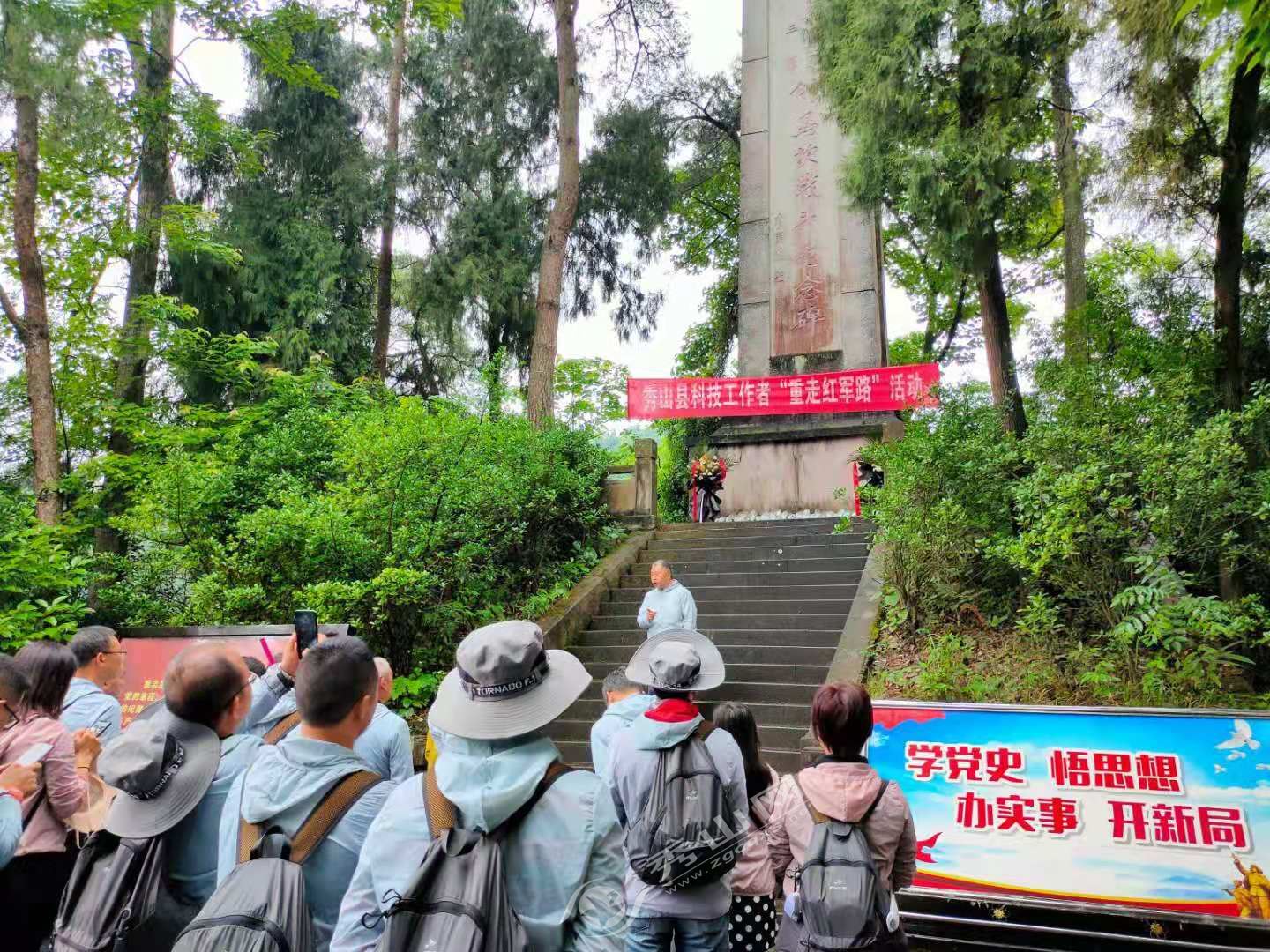 秀山網訊 眾心向黨、自立自強。5月29日上午,在第五個“全國科技工作者日”即將到來之際,秀山縣科協聯合縣青輔協共40余人,在愛國主義教育基地——隘口鎮倒馬坎戰斗紀念碑下,舉行了秀山縣科技工作者“重走紅軍路”黨史學習教育活動。