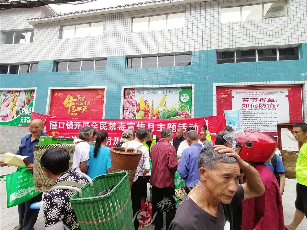 秀山網(wǎng)訊 禁絕毒品,人人有責(zé)。6月16日上午,隘口鎮(zhèn)禁毒辦聯(lián)合司法所、派出所充分利用農(nóng)村趕集日契機(jī),廣泛開(kāi)展禁毒宣傳。