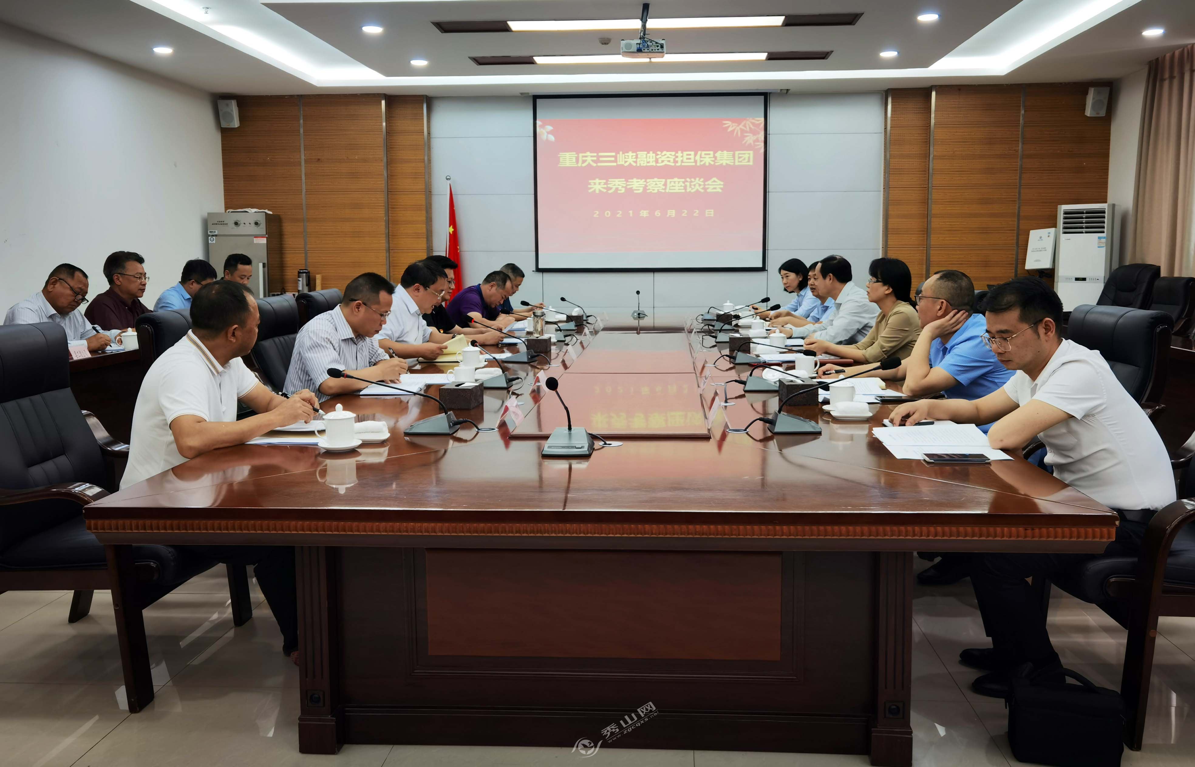 秀山網訊 6月22日,重慶三峽融資擔保集團黨委書記、董事長李衛東一行來秀考察并座談,就對接鄉村振興工作進行溝通交流??h委副書記、縣長馬文森,縣委常委、縣政府常務副縣長付強出席會議。
